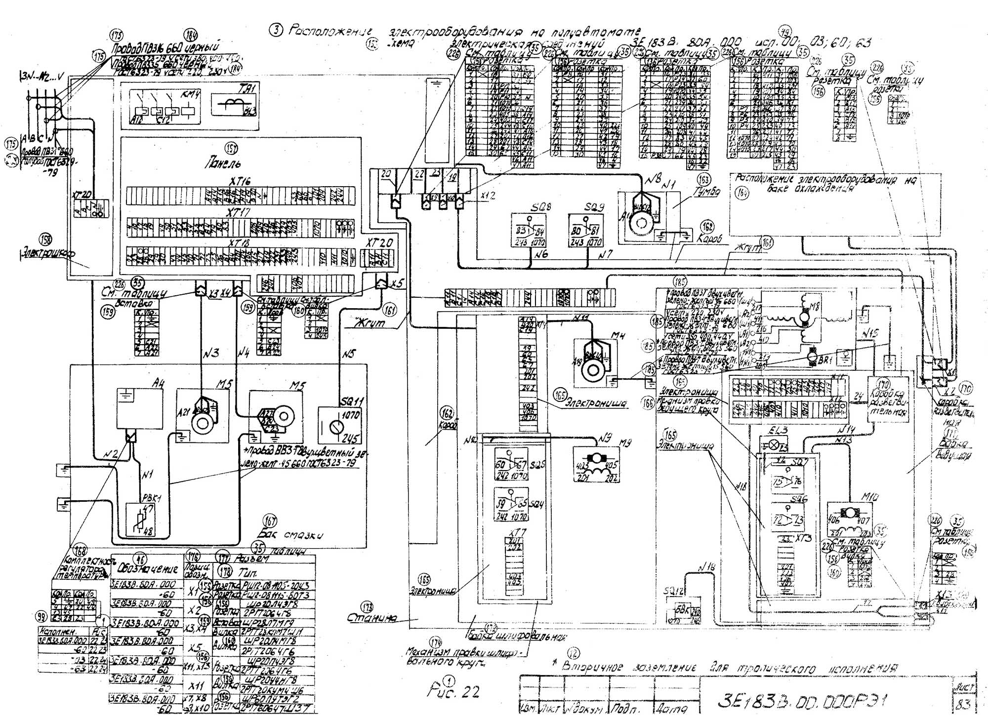 Схема електрична бесцентрово-шлифовального верстата 3Е183