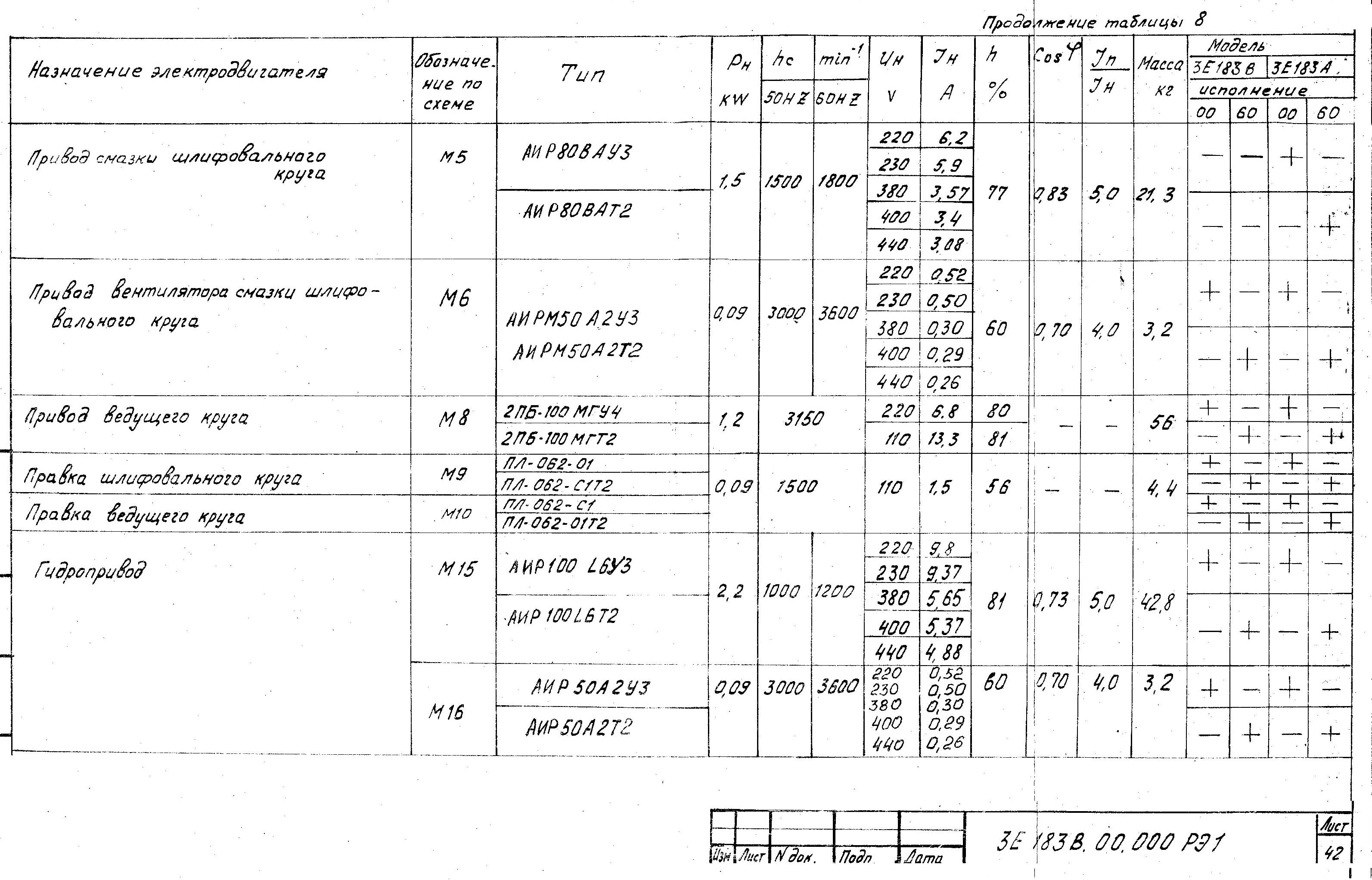 Клас точності верстатів за ГОСТ 8-82Е: мод. 3Е183В - В; мод. 3Е183А - А.