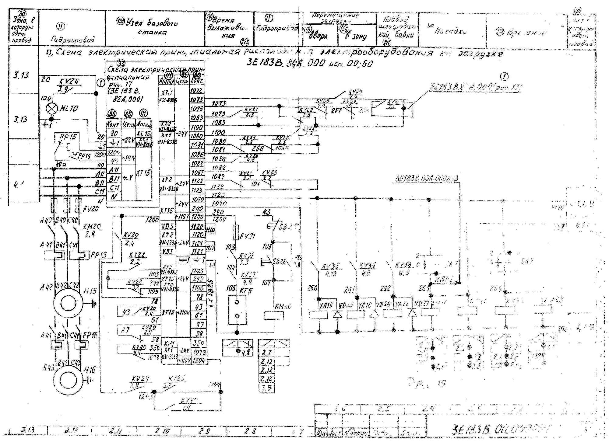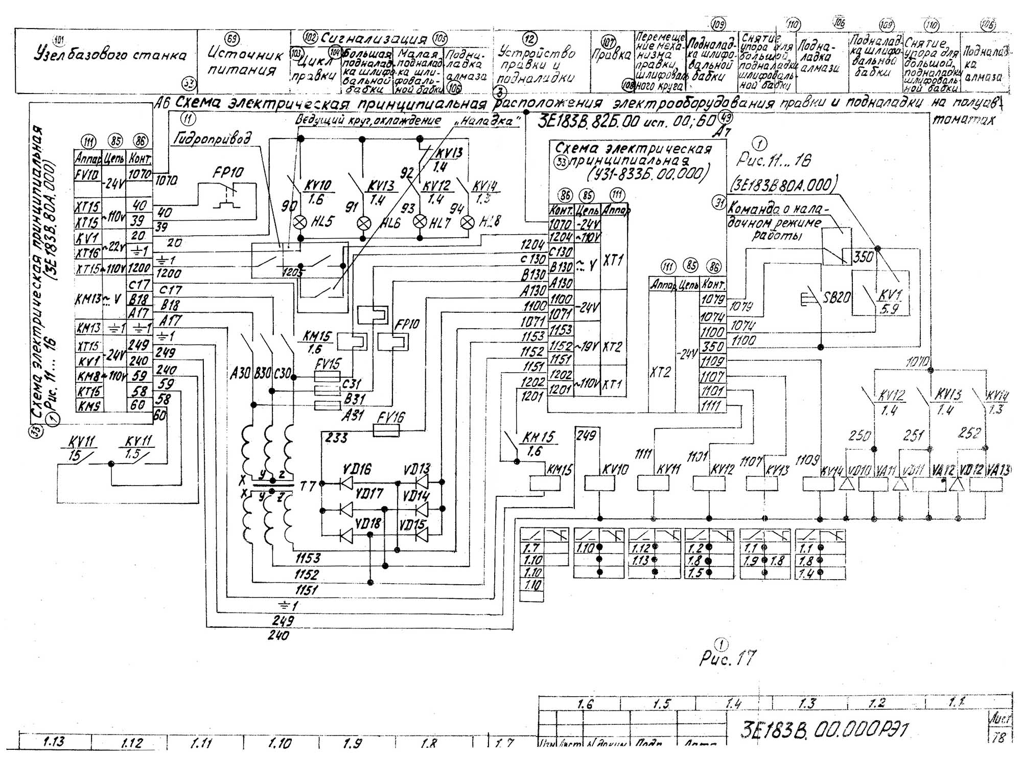 Схема електрична бесцентрово-шлифовального верстата 3Е183. Дивитись у збільшеному масштабі