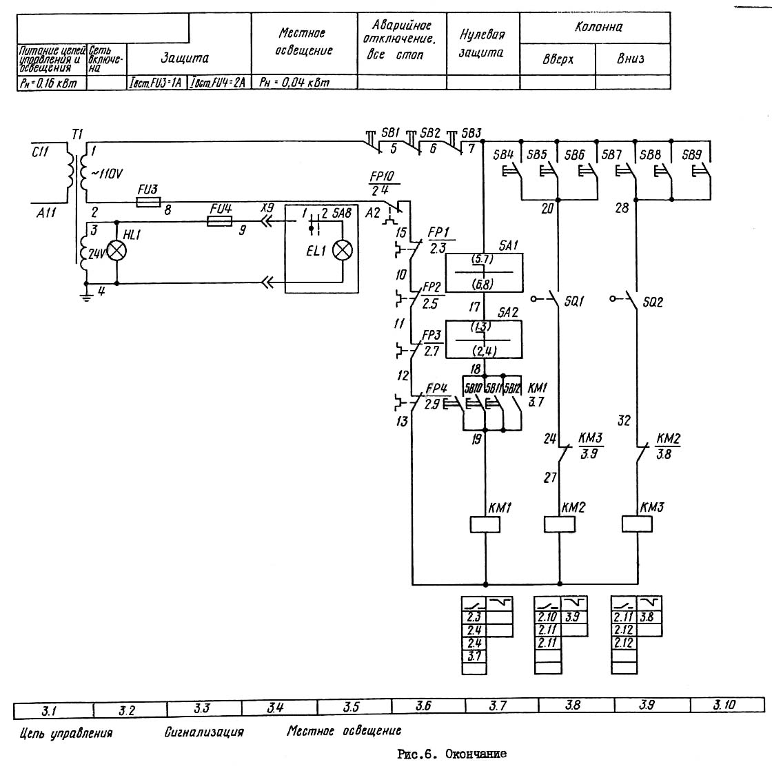 Подъем і опускание колонны осуществляется выключателями SB4… SB6 і SB7… SB9, соответственно.