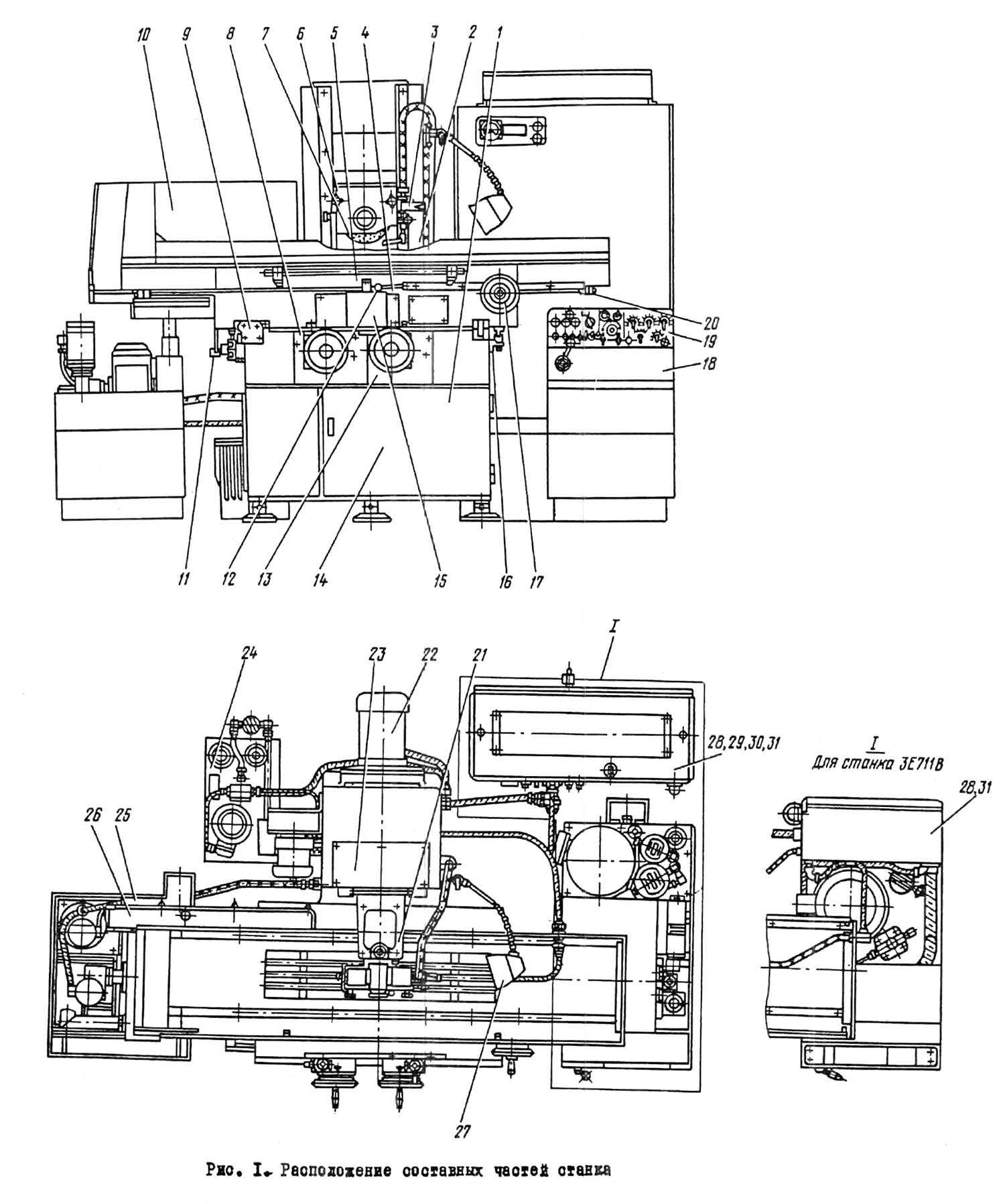 Розташування складових частинин плоскошліфувального верстата 3Е711ВФ1