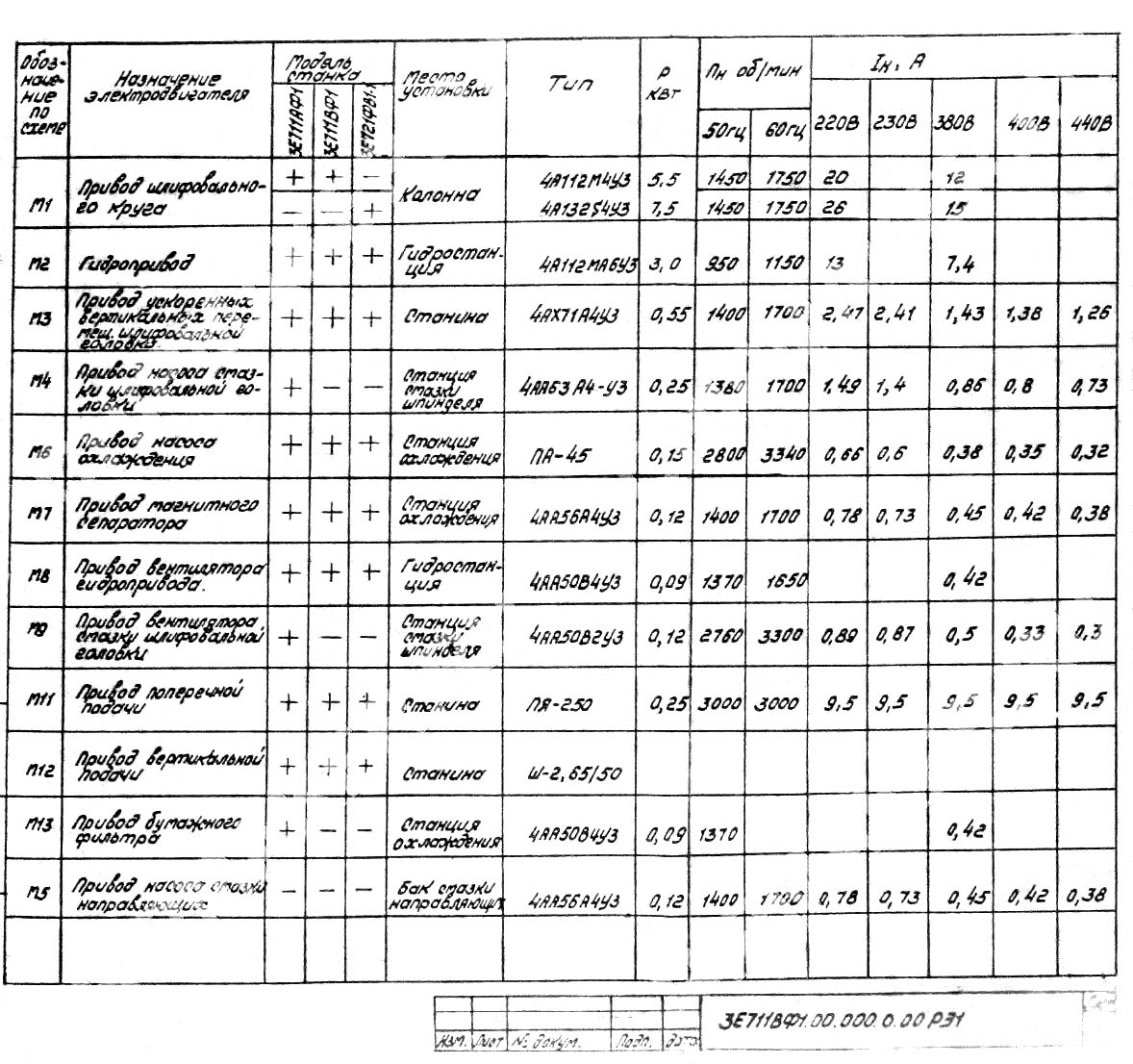 Технічні характеристики електродвигунів верстата 3Е711ВФ1