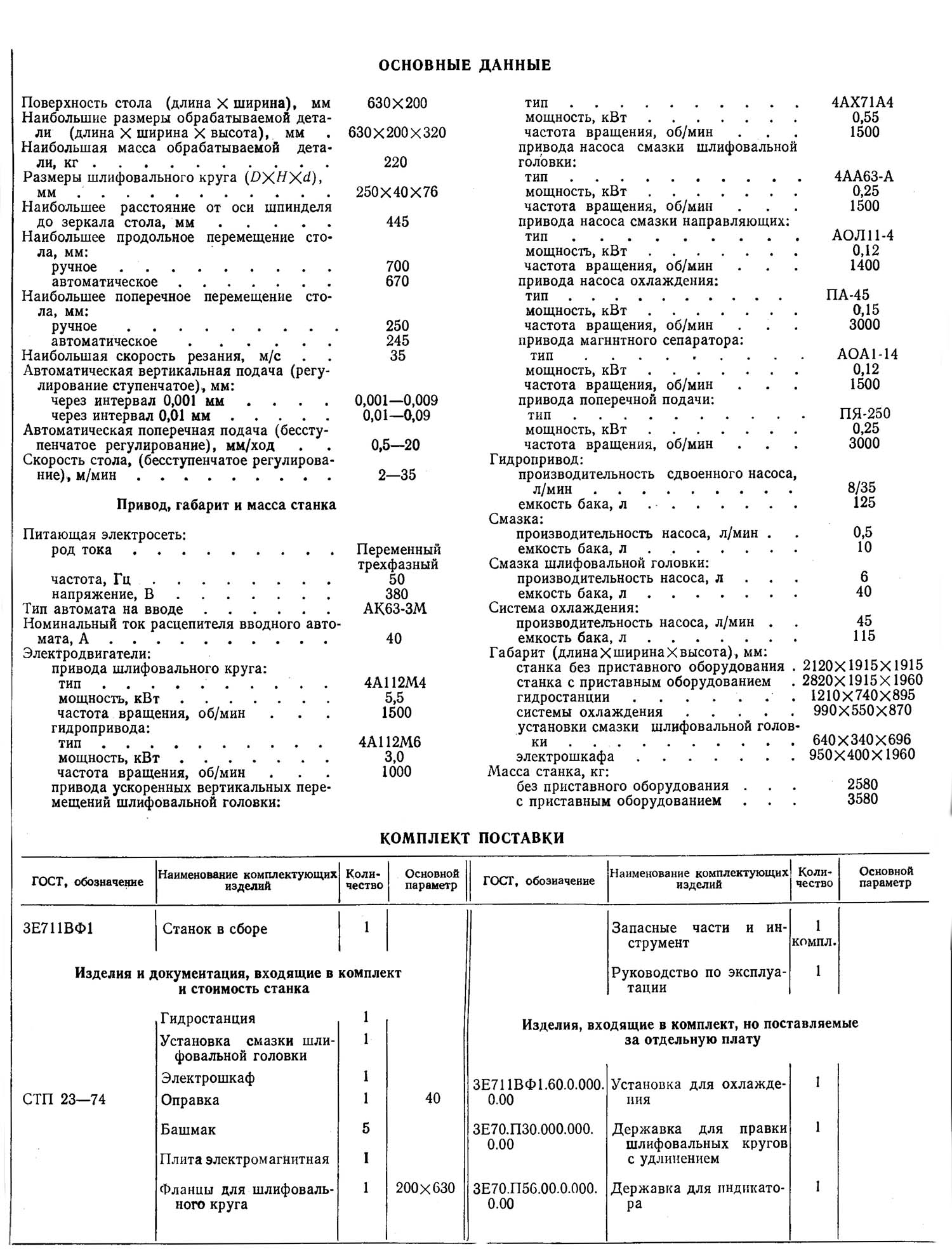 Універсальний плоскошліфувальний верстат високої точності з горизонтальним шпинделем та хрестовим столом 3Е711ВФ1 призначений для шліфування плоских поверхонь периферією кола плоских поверхонь різних виробів, закріплених на дзеркалі столу, магнітній та електромагнітній плитах або у пристосуванні. Можливе шліфування торцем кола вертикальних поверхонь.