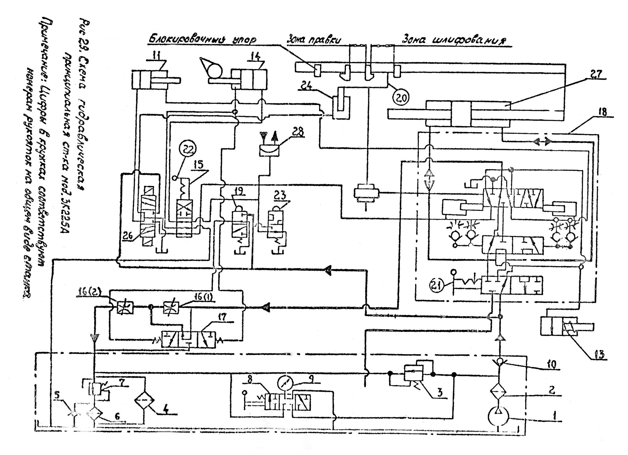 1. Гідравлічна схема внутришлифовального верстата 3К225. Дивитись у збільшеному масштабі