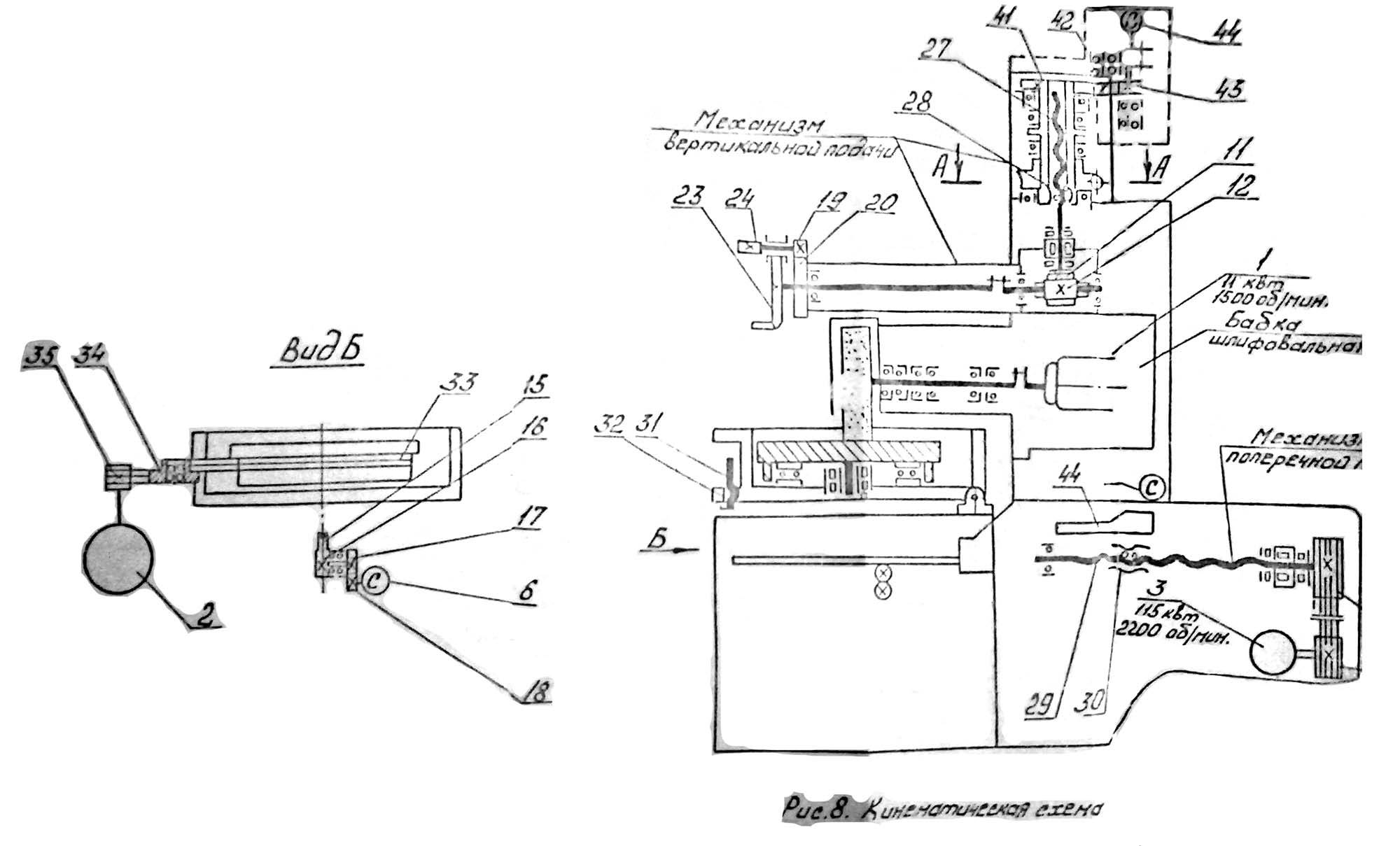 Кінематична схема плоскошліфувального верстата 3Л741ВФ10