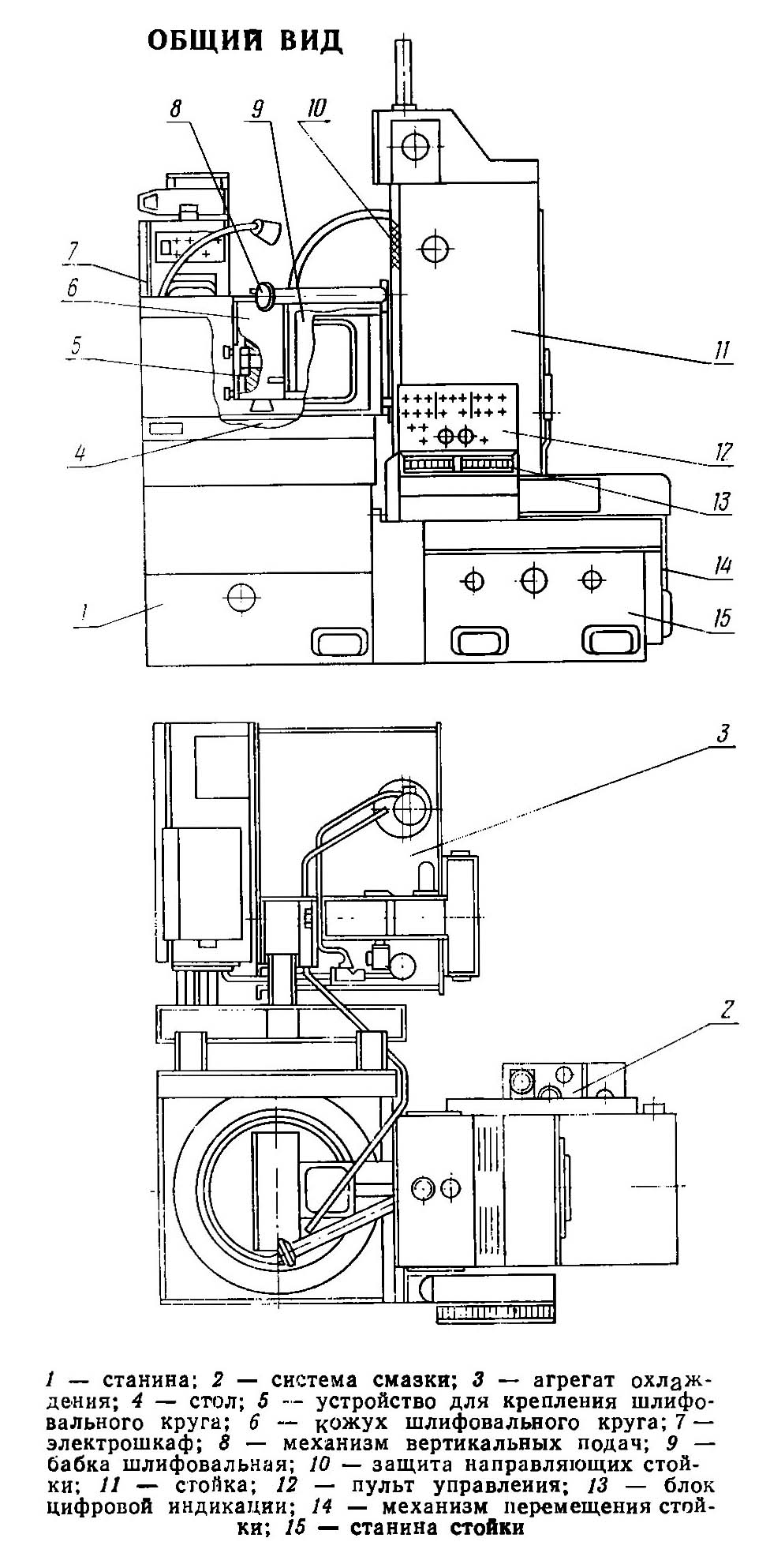 Шліфувальна бабка та стійка верстата мають блокування, що забезпечують відключення їхнього переміщення при досягненні ними крайніх положень.