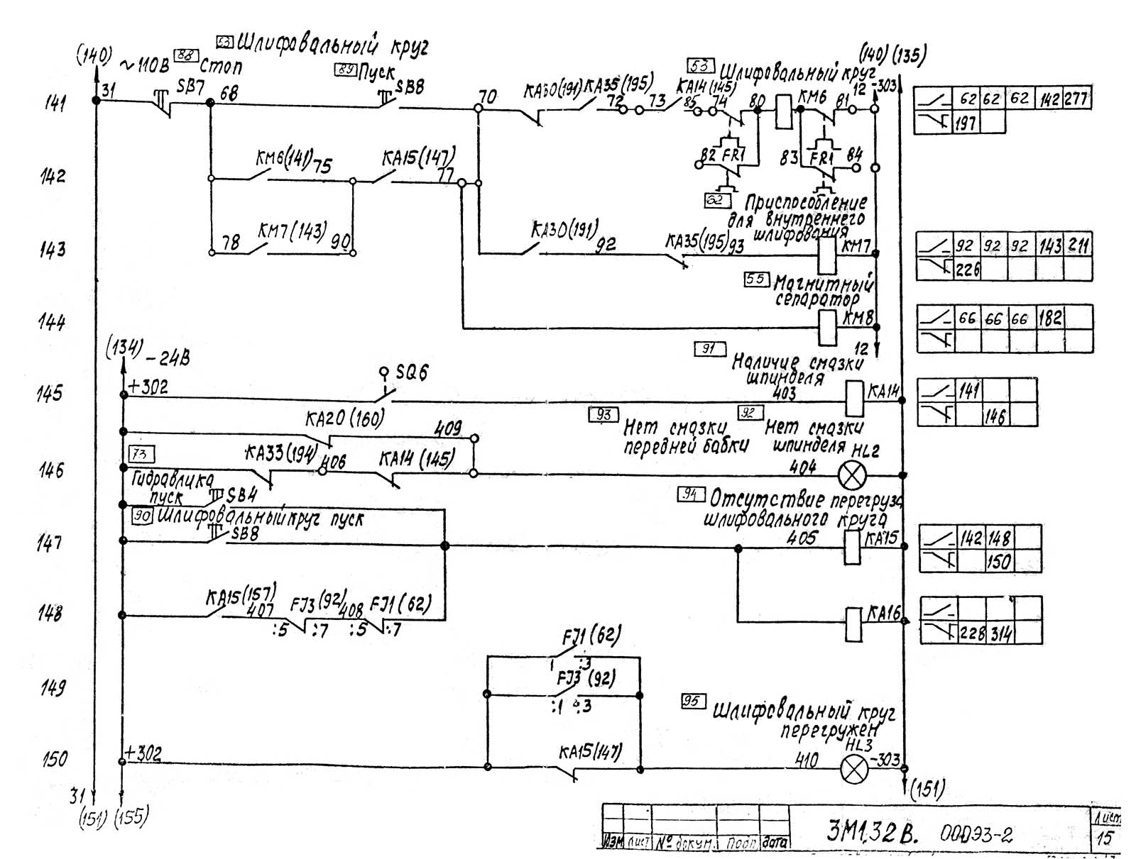 Електроустаткування круглошлифовального верстата 3М132в. 1982, 1987 год