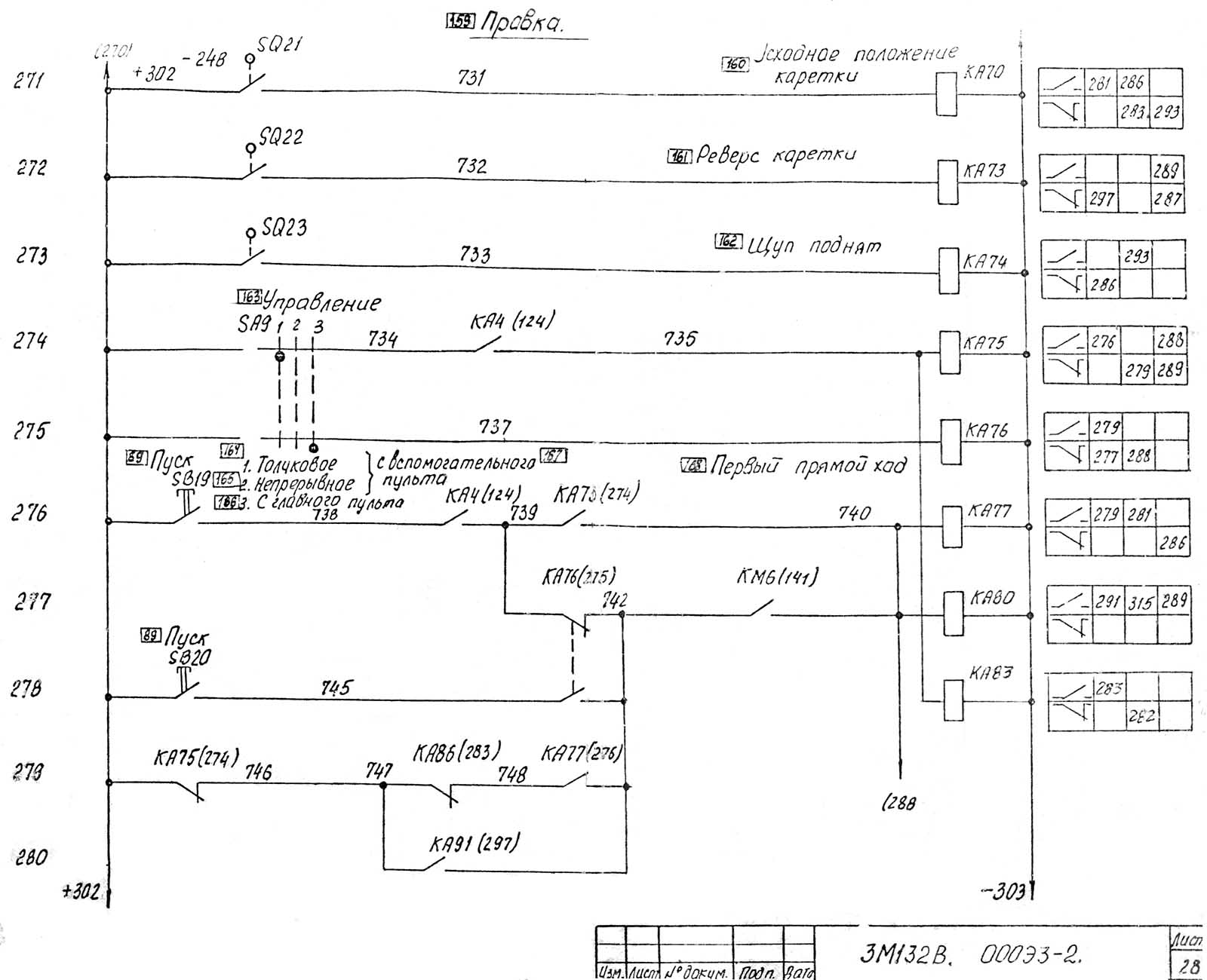 Во время первоначального пуска двигуна M12 при отсутствии заготовки в патроне і произведенных подачах шлифовальной бабки проверьте работоспособность предохранительного пристроя от перегрузки. Для етого кратковременно нажмите кнопку пуска шлифовального круга я убедитесь в том, что происходит перезарядка механізма подач в момент срабатывания реле FJ3 * В дальнейшем - "Приспособление "