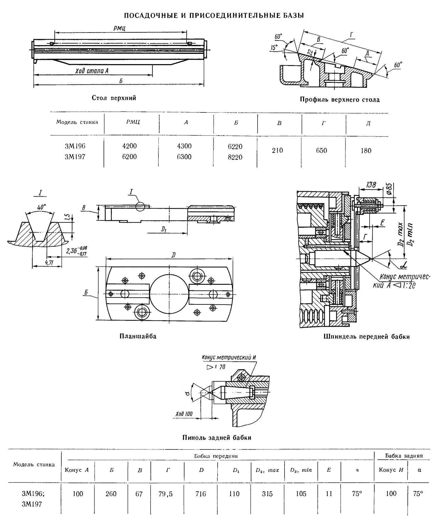 Посадочні та приєднувальні бази шліфувального верстата 3М196