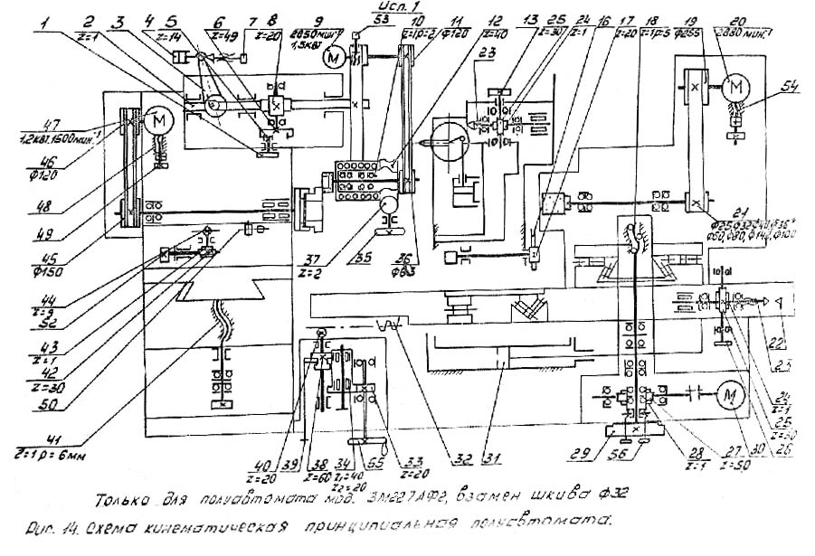 Схема кінематична внутришлифовального верстата 3М227ВФ2. Дивитись у збільшеному масштабі