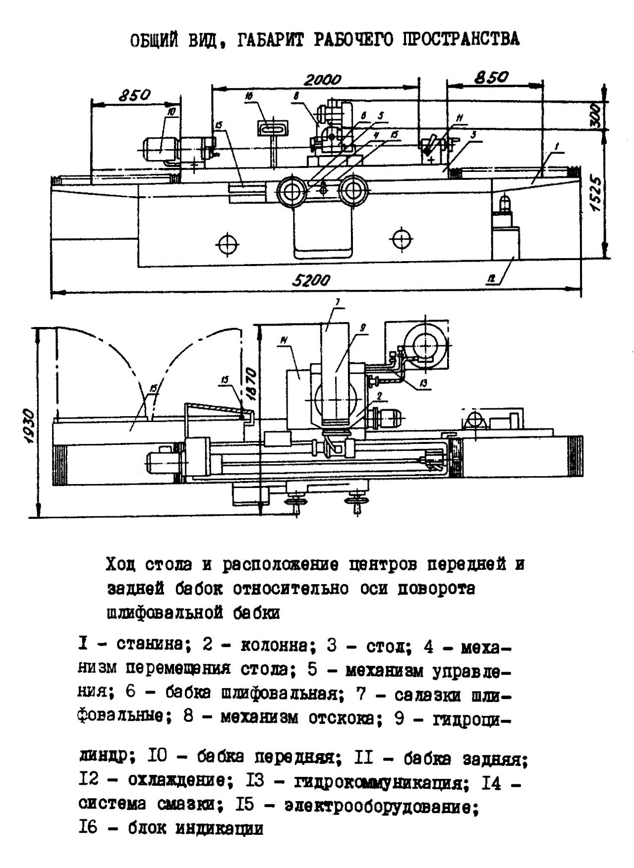3М601Ф1 Габаритні розміри робочого простору заточувального верстата для протяжок