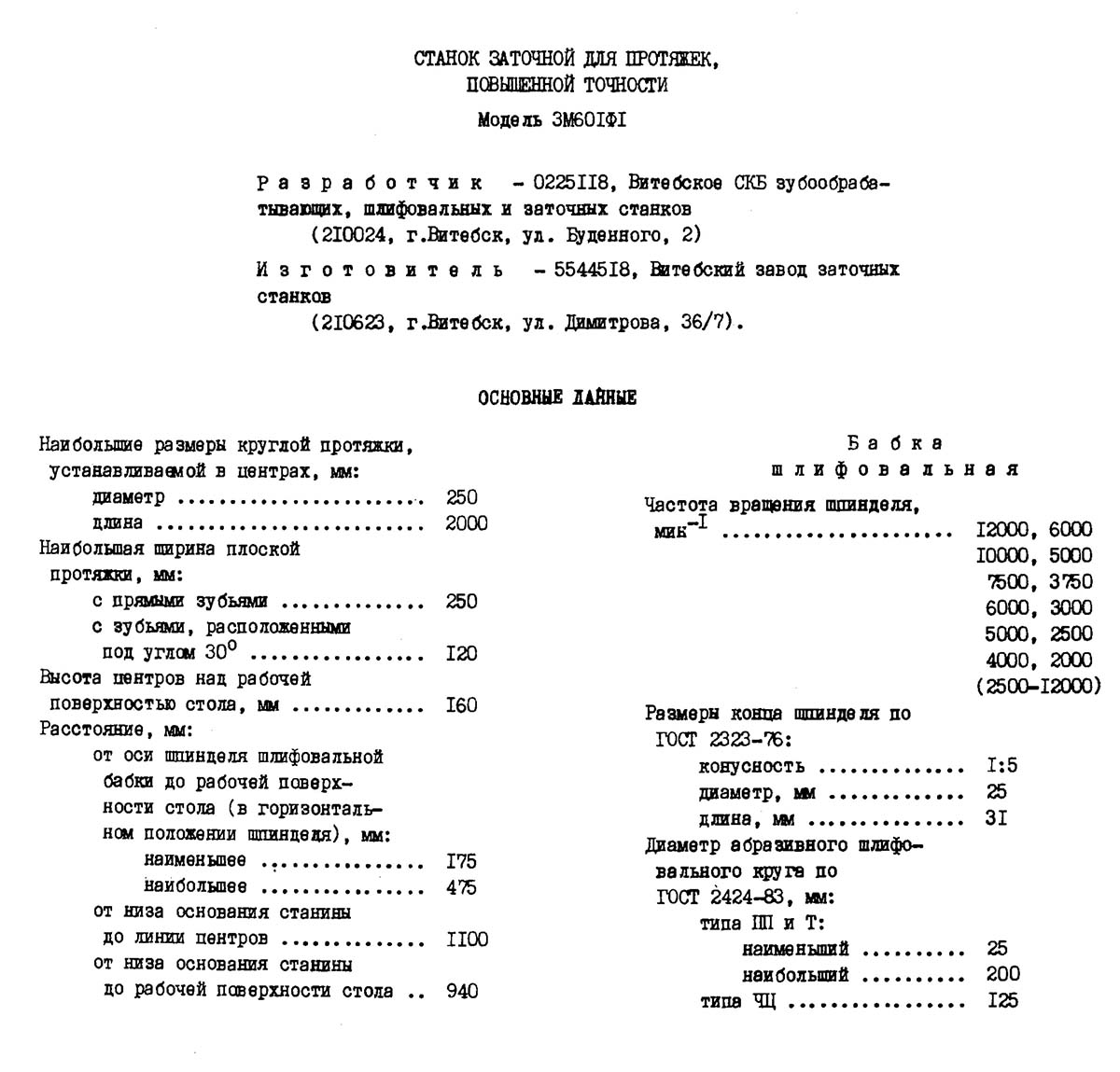 Виробник заточувального верстата для протяжок 3М601Ф1 - Вітебський завод заточувальних верстатів Візас , заснований у 1897 році.