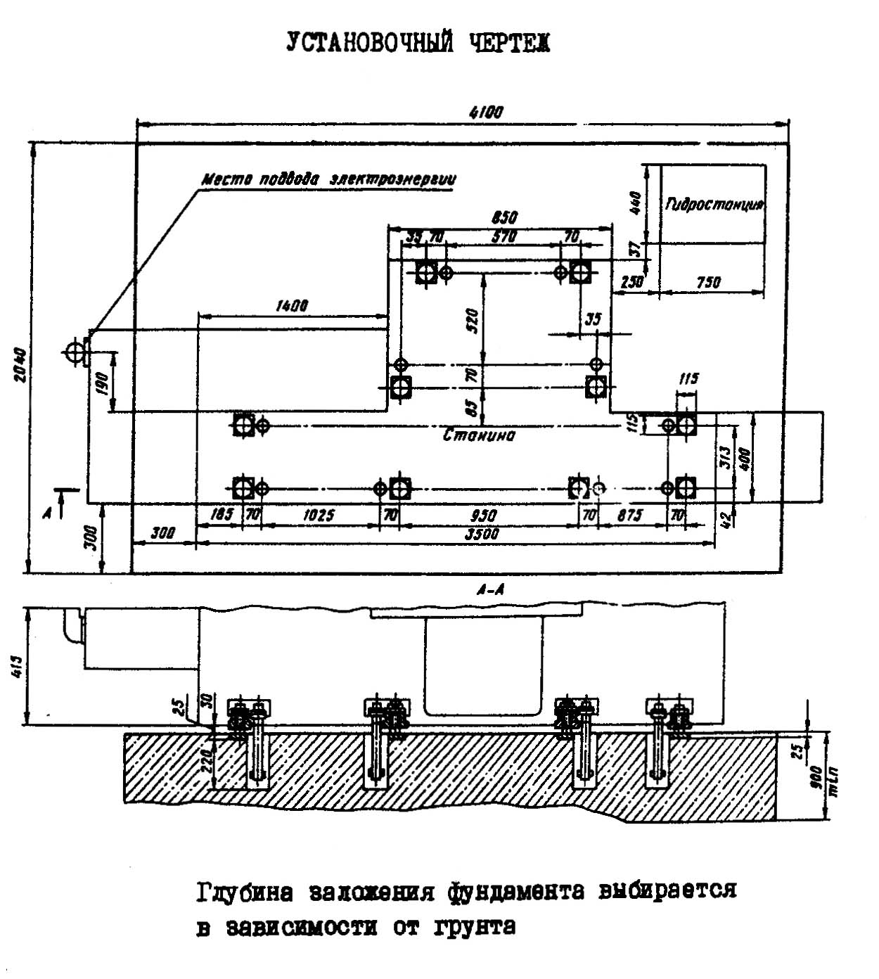 Установочне креслення заточувального верстата для протяжок 3М601Ф1