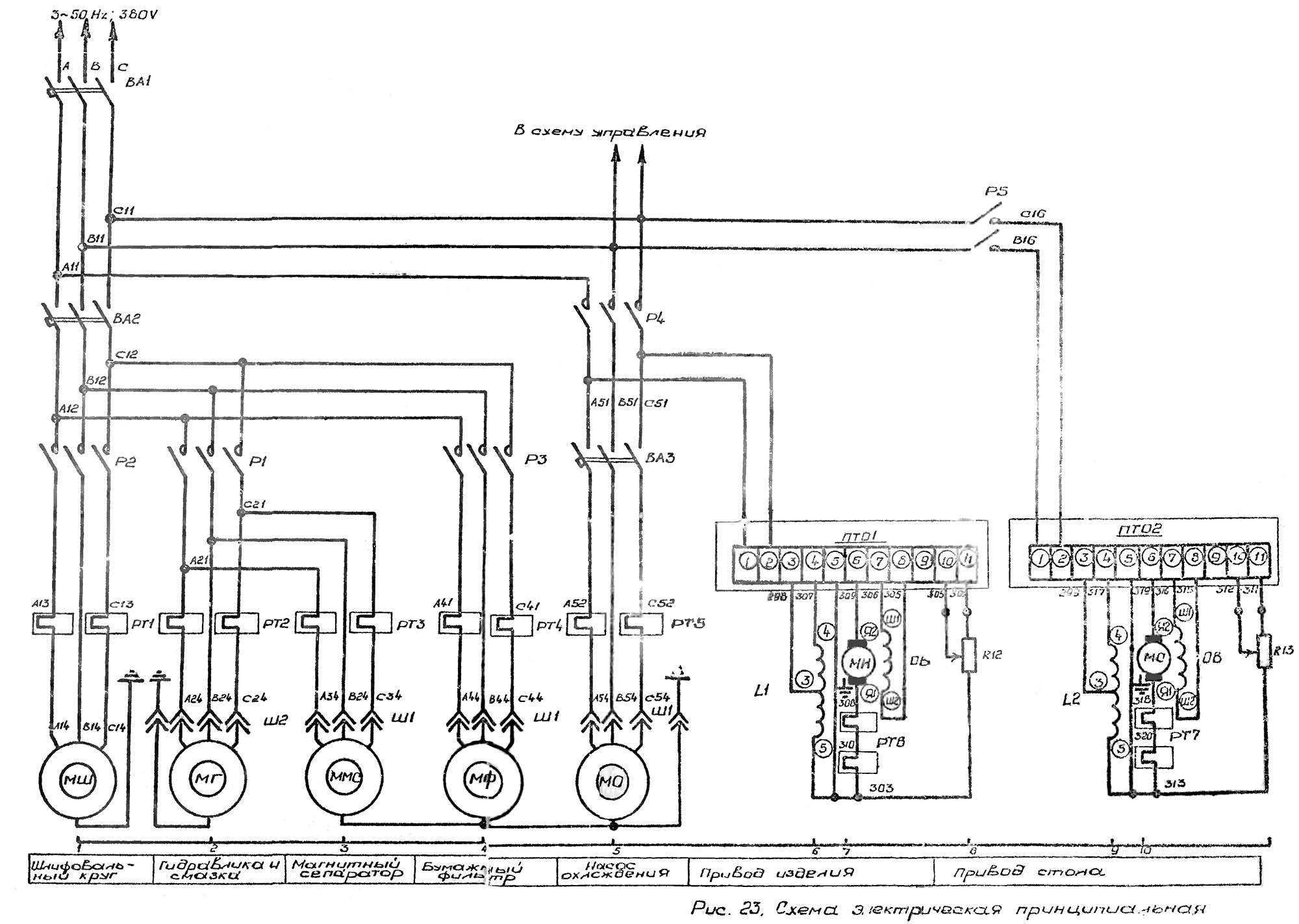 Електрична схема круглошлифовального верстата 3У10А, 3У10В, 3У10С