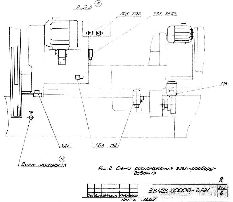 Розташування електроустаткування на круглошлифовальном станке 3В423
