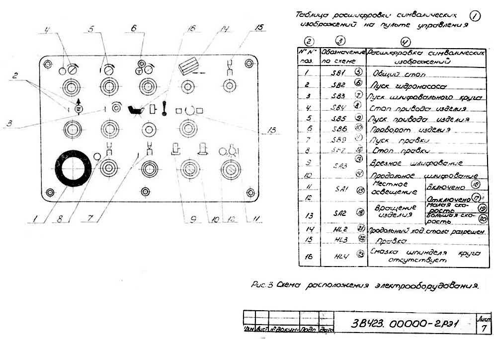 Розташування органів керування круглошліфувальним верстатом 3в423