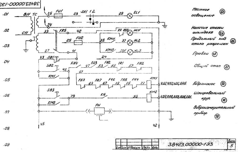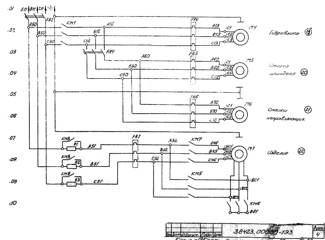 Независимо от режима роботи схема електрического керування работает только при включенной гідросистеме верстата.