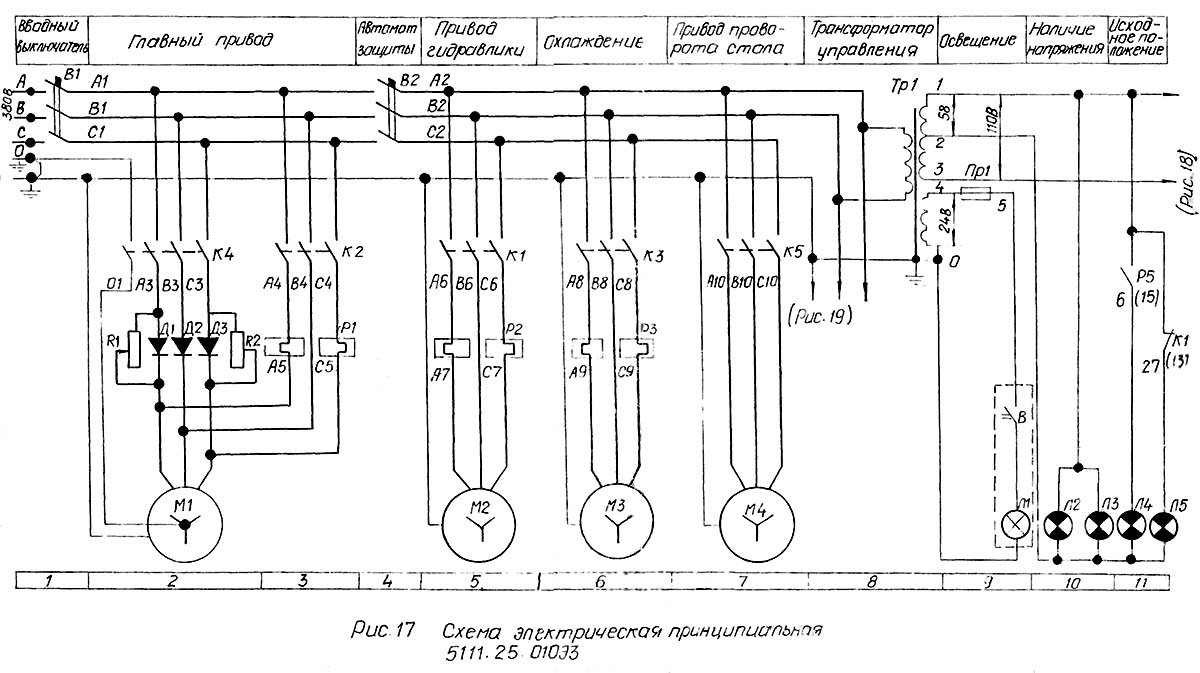 Схема електрична зубодолбежного верстата 5111. Дивитись у збільшеному масштабі
