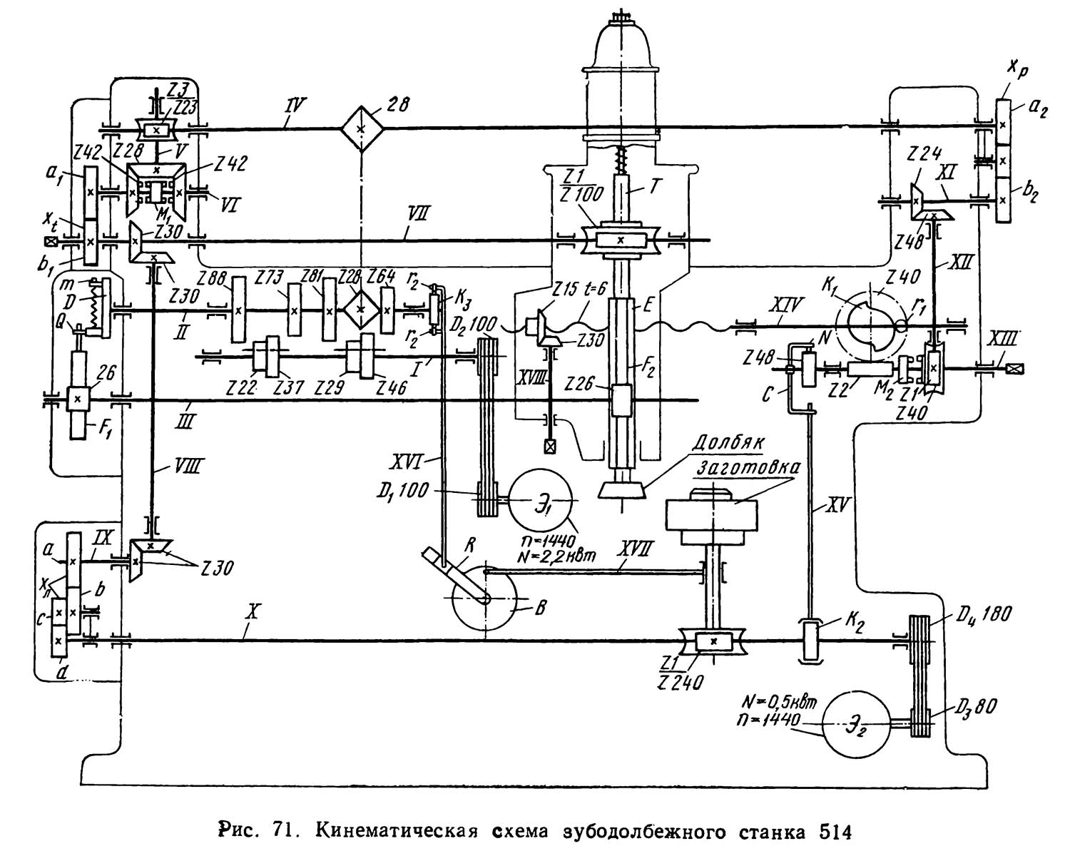 Схема кінематична і налаштування зубодолбежного верстата 514