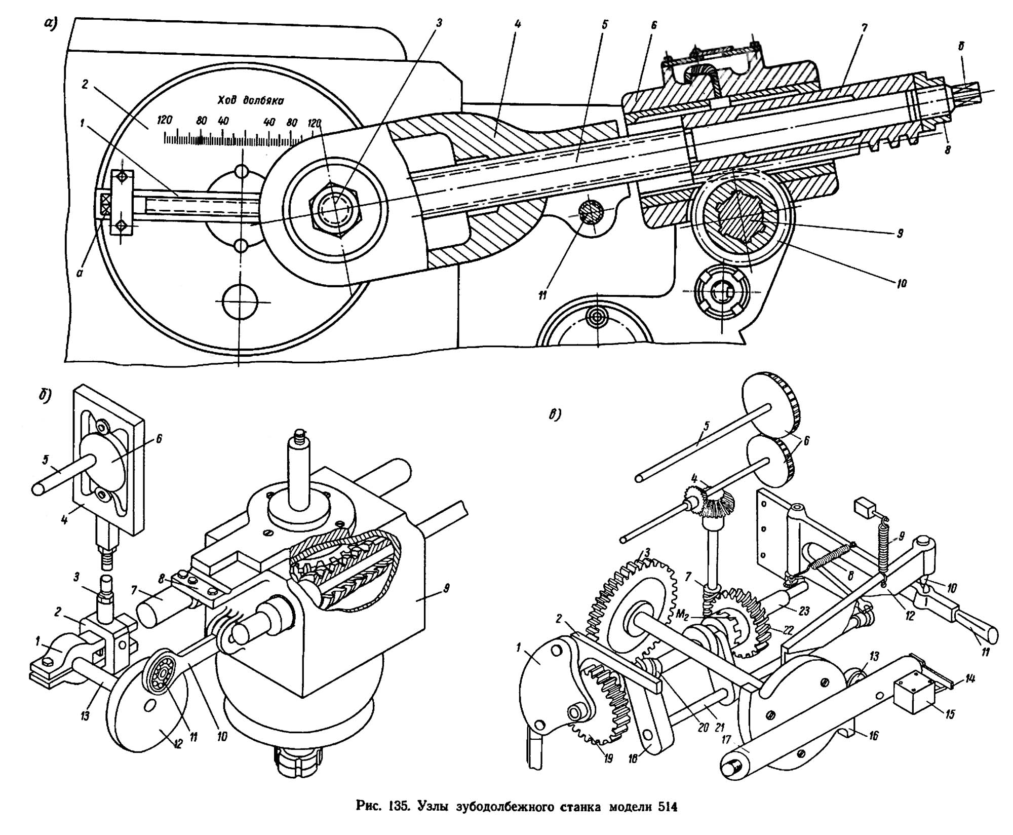Вузли зубодолбежного верстата 514. Дивитись у збільшеному масштабі