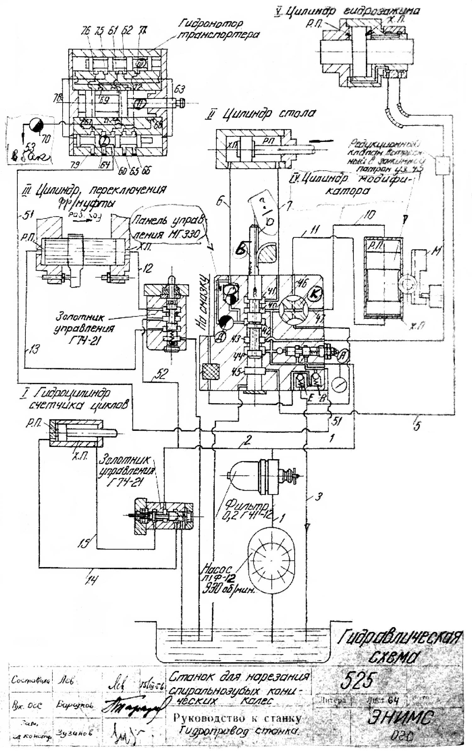 Керування гідравликой зуборезного верстата 525. Дивитись у збільшеному масштабі