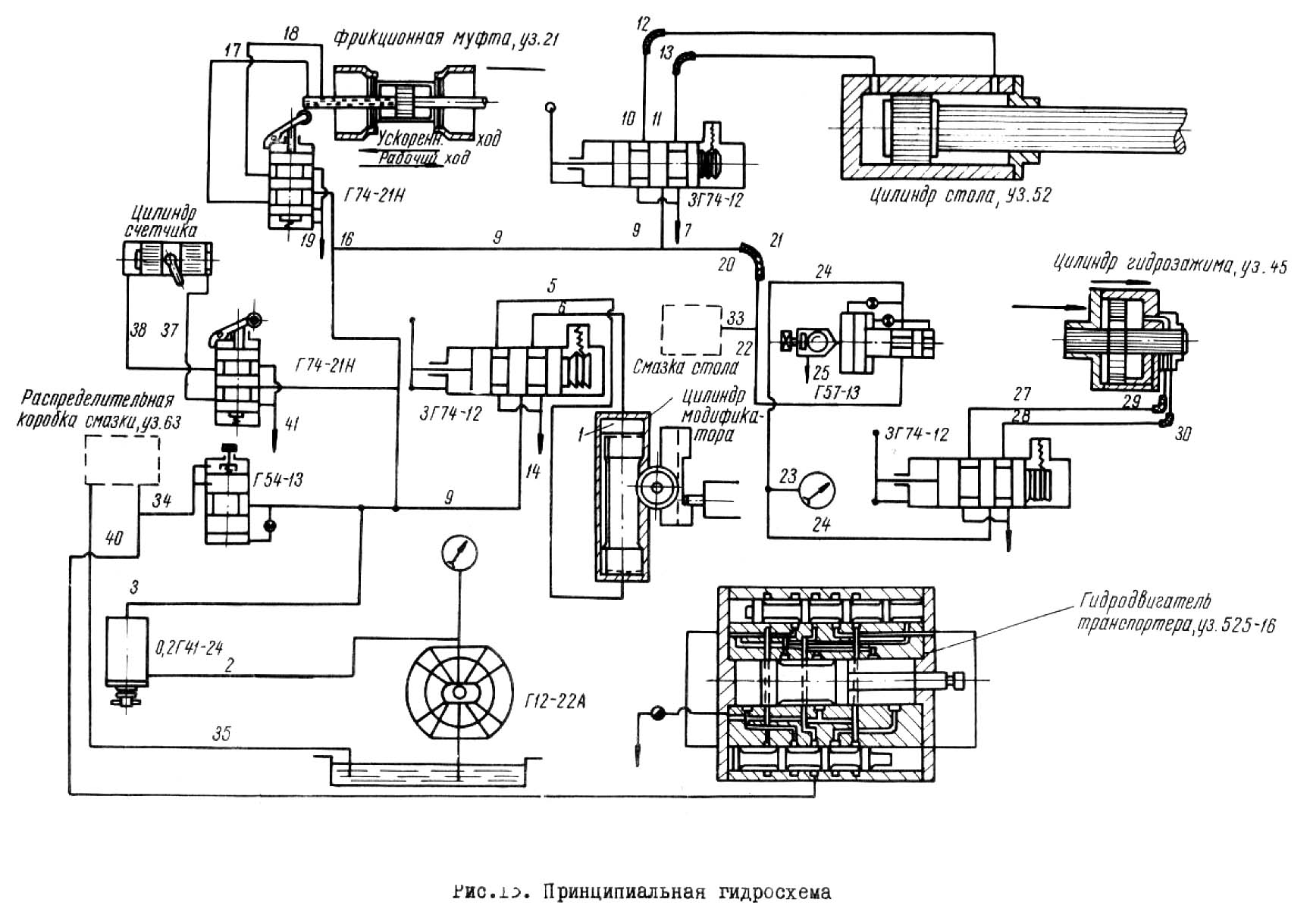 1. Кінематична схема зуборезного верстата 528с. Дивитись у збільшеному масштабі