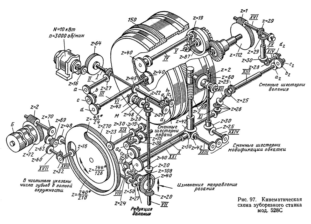 2. Кінематична схема зуборезного верстата 528с. Дивитись у збільшеному масштабі