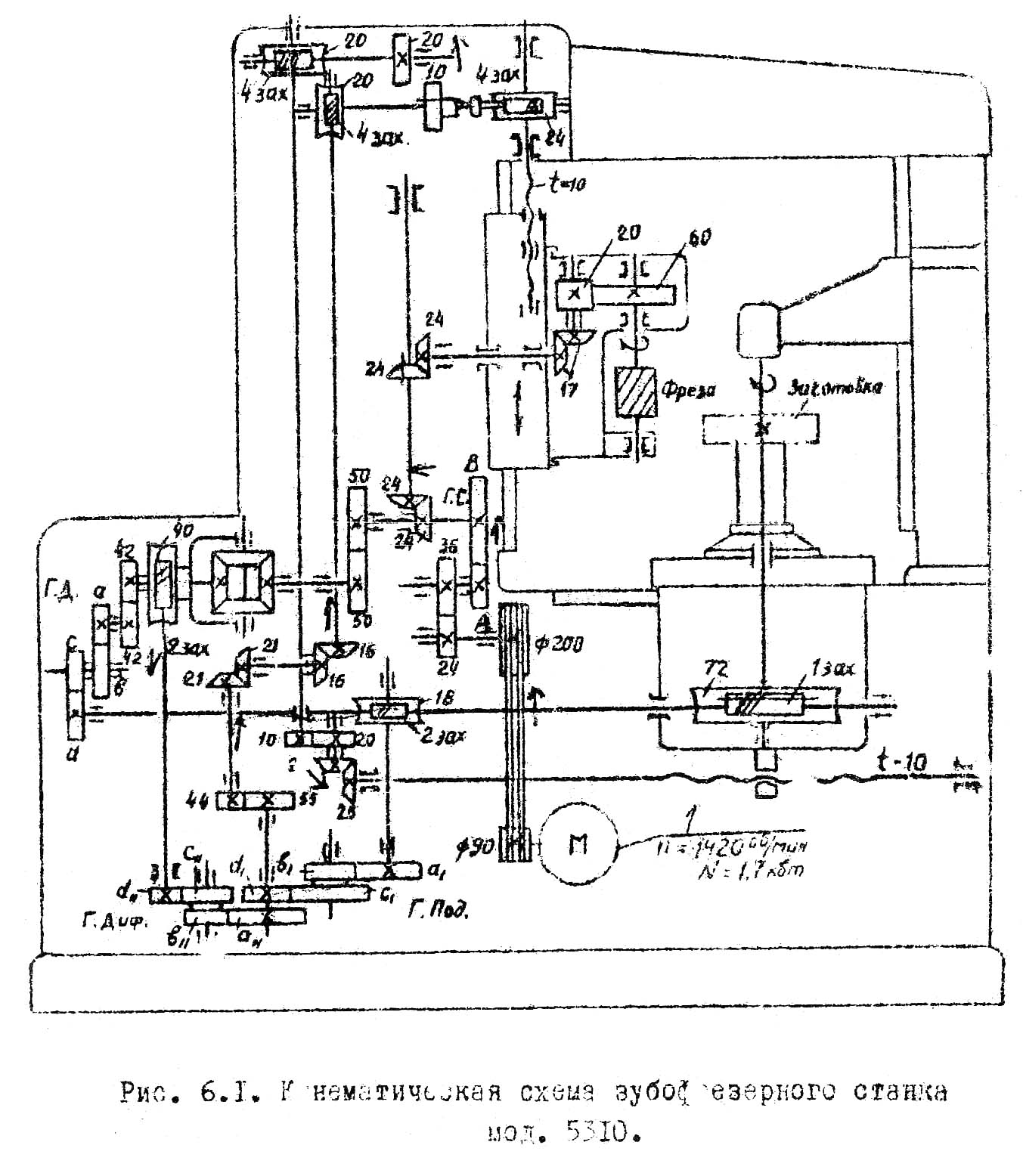 Опис кінематичної схеми зубофрезерного верстата 5310