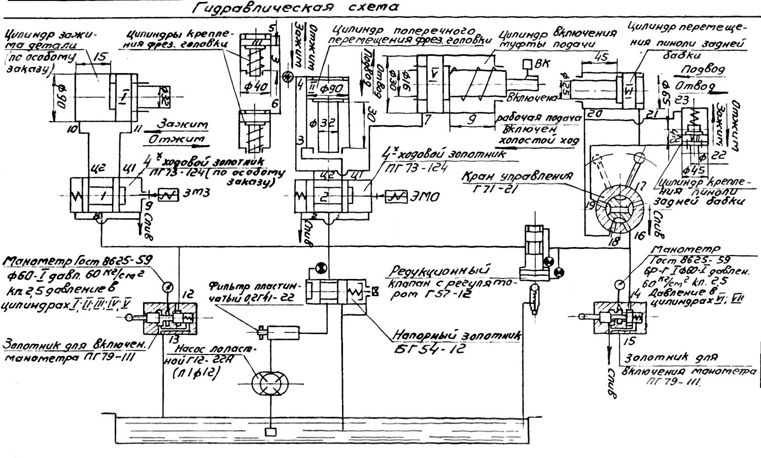 Гідравлічна схема шлицефрезерного верстата 5350а
