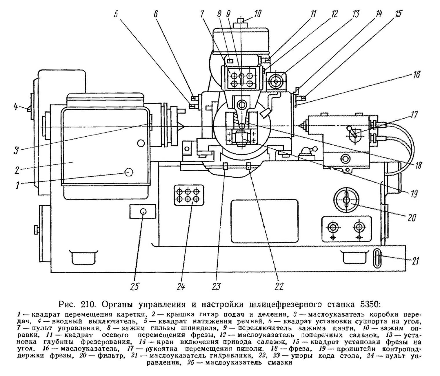 На примере шлицефрезерного верстата 5350 (рис. 210) рассмотрим процесс налагодження по операциям.