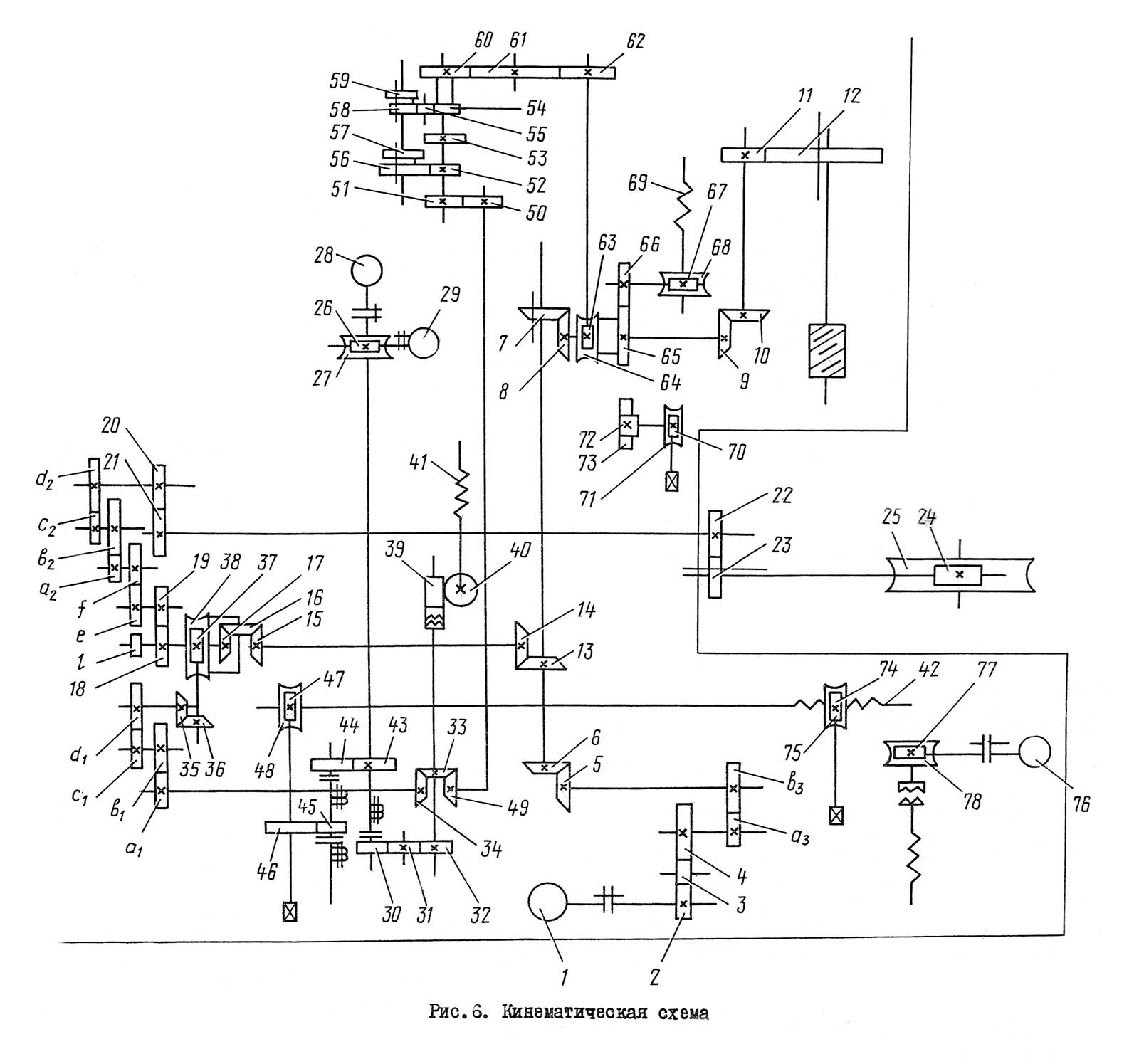 При нарезании зубьев обертання фрезы і заготовки должны быть согласованы между собой. Чтобы обеспечить ето условие, в станке имеется специальная ланцюг, принципова схема налаштування которой показана на рис. 2. Если колесо имеет z зубьев і совершит пк оборотів, а фреза за ето время сделает nф оборотів, то передаточное отношение ix между числом оборотів колеса і фрезы.