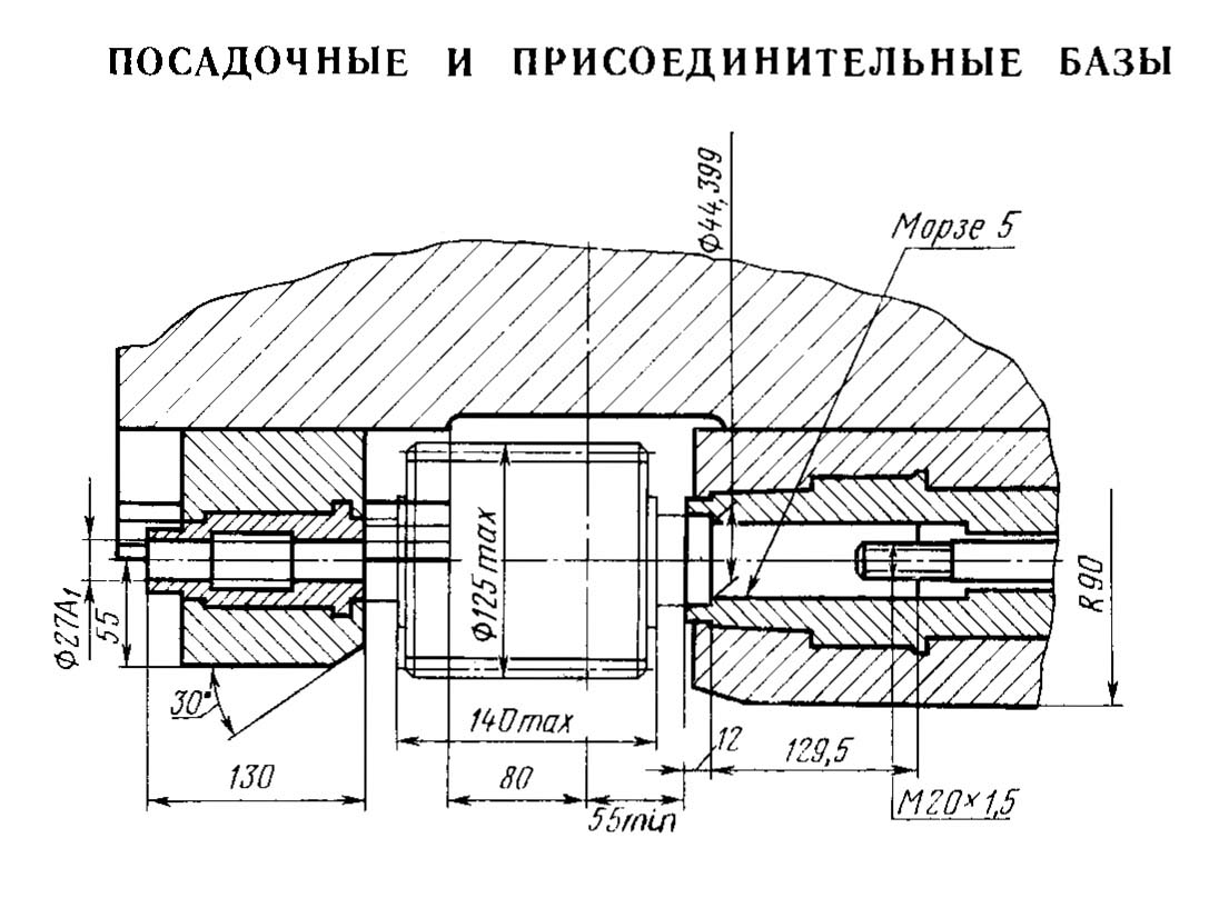 Посадочные і присоединительные базы зубофрезерного напівавтомату 53А13. Дивитись у збільшеному масштабі