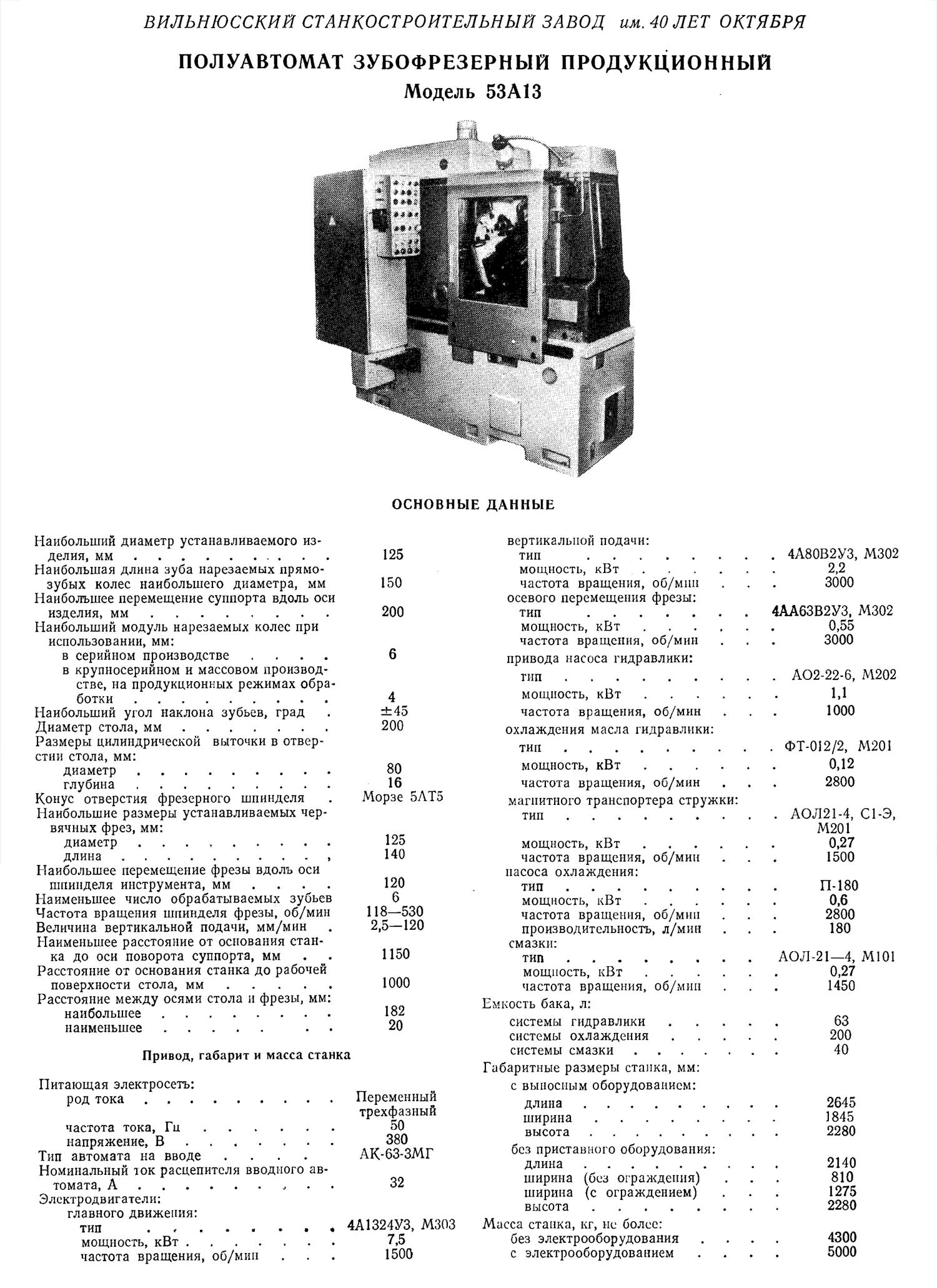 Производитель вертикального зубофрезерного верстата 53А13 Вильнюсский станкостроительный завод им. 40-летия Октября.