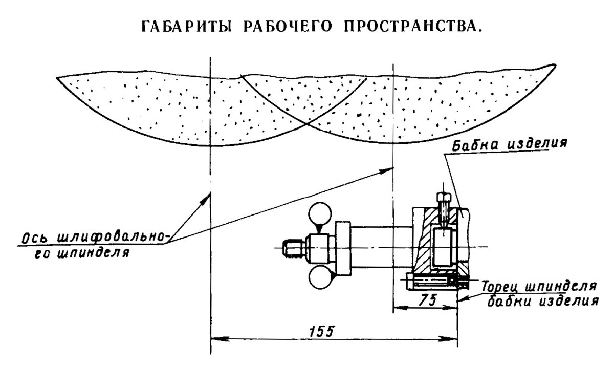 Расстояние от оси шлифовального шпинделя до оси шпинделя бабки вироби, мм 10..225