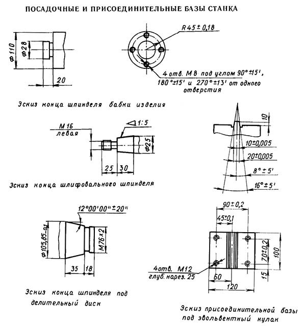 Посадочные і присоединительные базы зубошлифовального верстата 5891