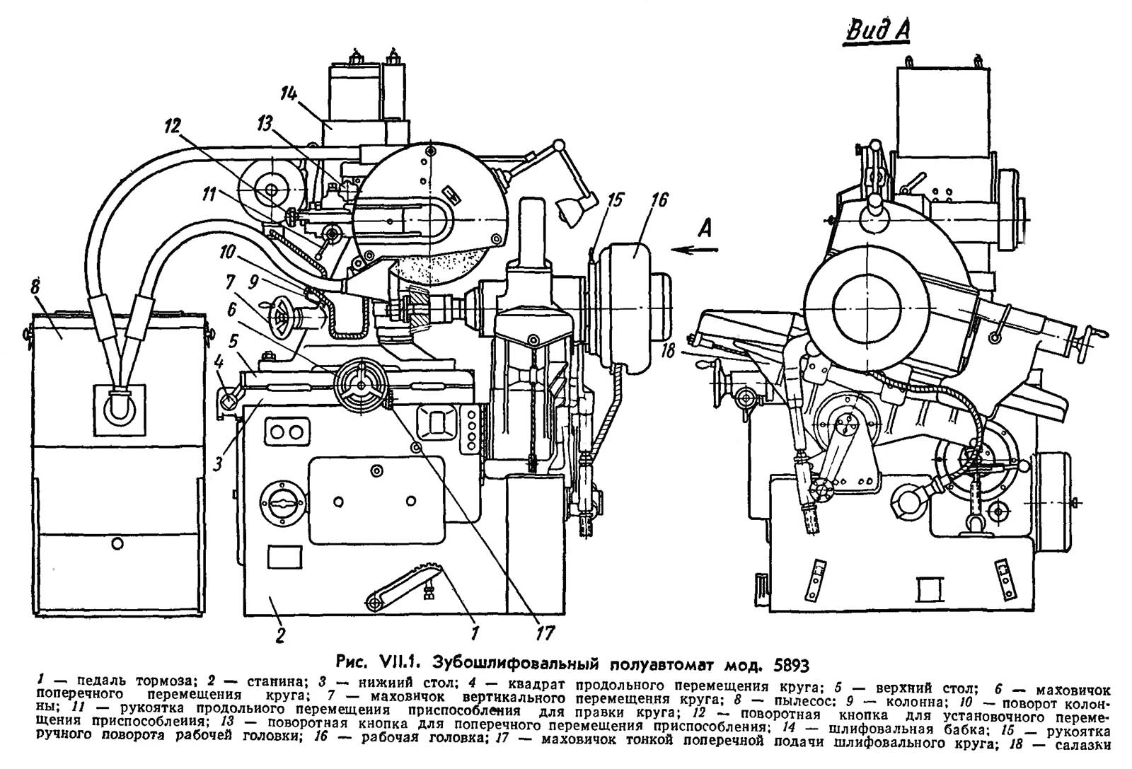 5893 Розташування складових частин зубошлифовального верстата 5893