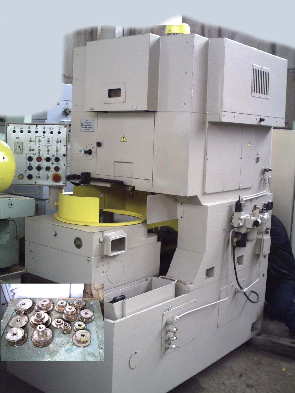 При установці в суппорте специальных винтовых направляючих, изготовляемых по техническому заданию заказчика, на напівавтоматі можно обрабатывать зубчасті колеса з косым зубом.