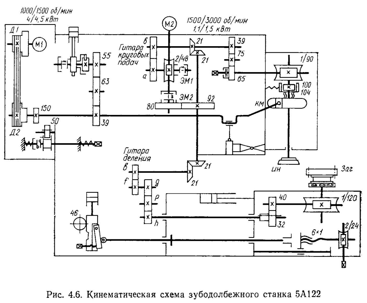 Схема кінематична зубодолбежного верстата напівавтомату 5А122
