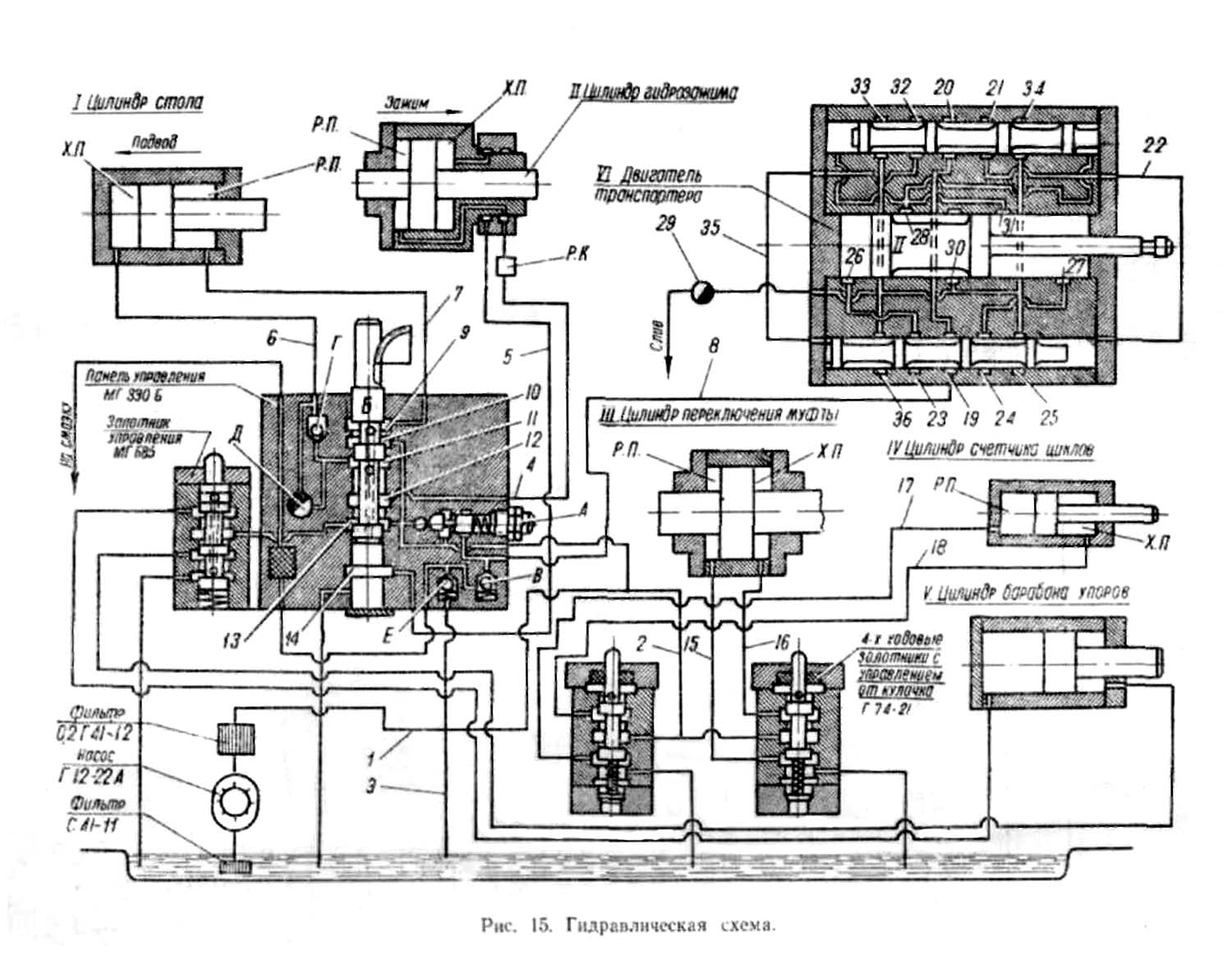 Гідравлічна схема зубострогального верстата 5а250п. Дивитись у збільшеному масштабі