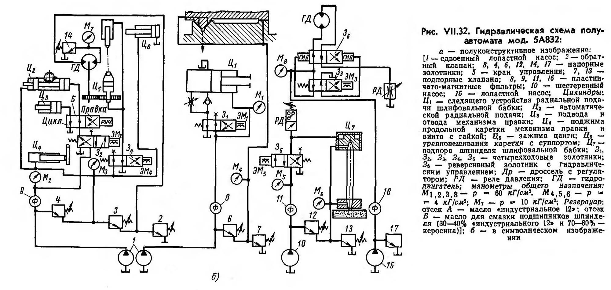 Гідравлічна схема зубошлифовального верстата 5А832