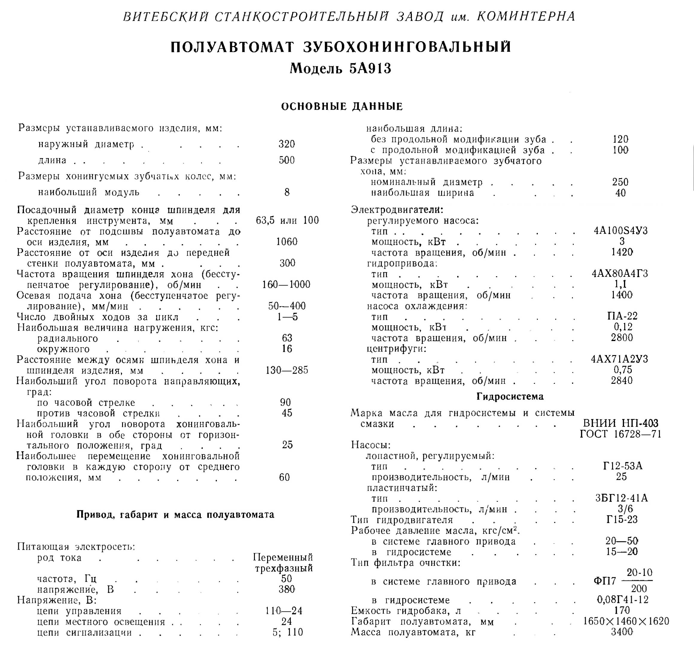 Производитель вертикального зубохонинговального верстата 5А913 - Витебский станкостроительный завод имени Коминтерна, основанный в 1877 году.
