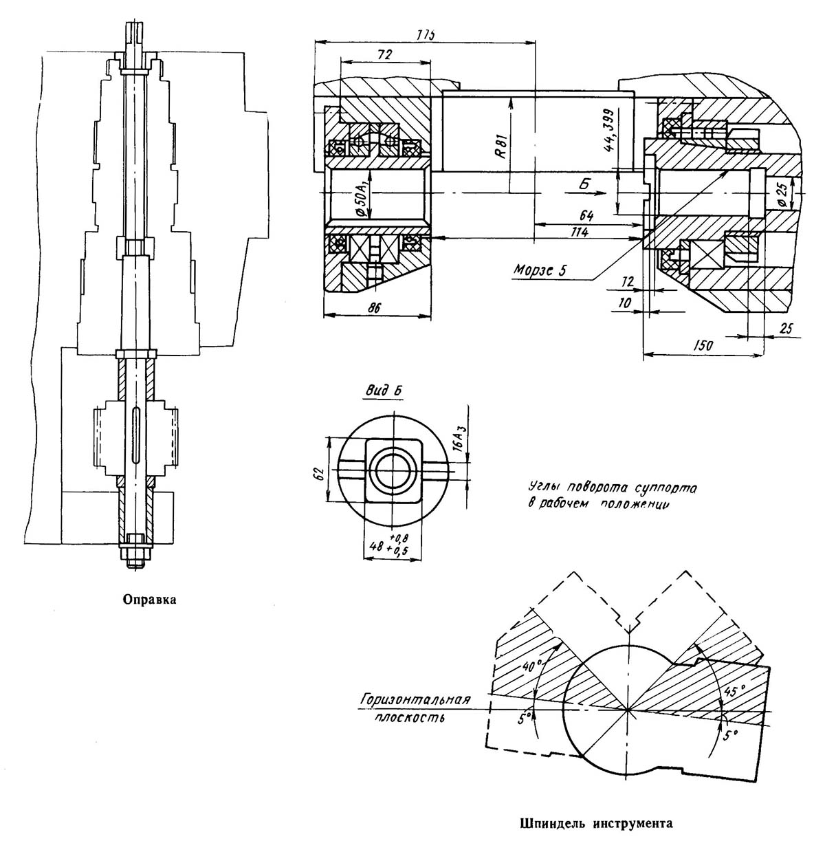 Шпиндель инструмента і оправка зубофрезерного верстата 5Б312. Дивитись у збільшеному масштабі