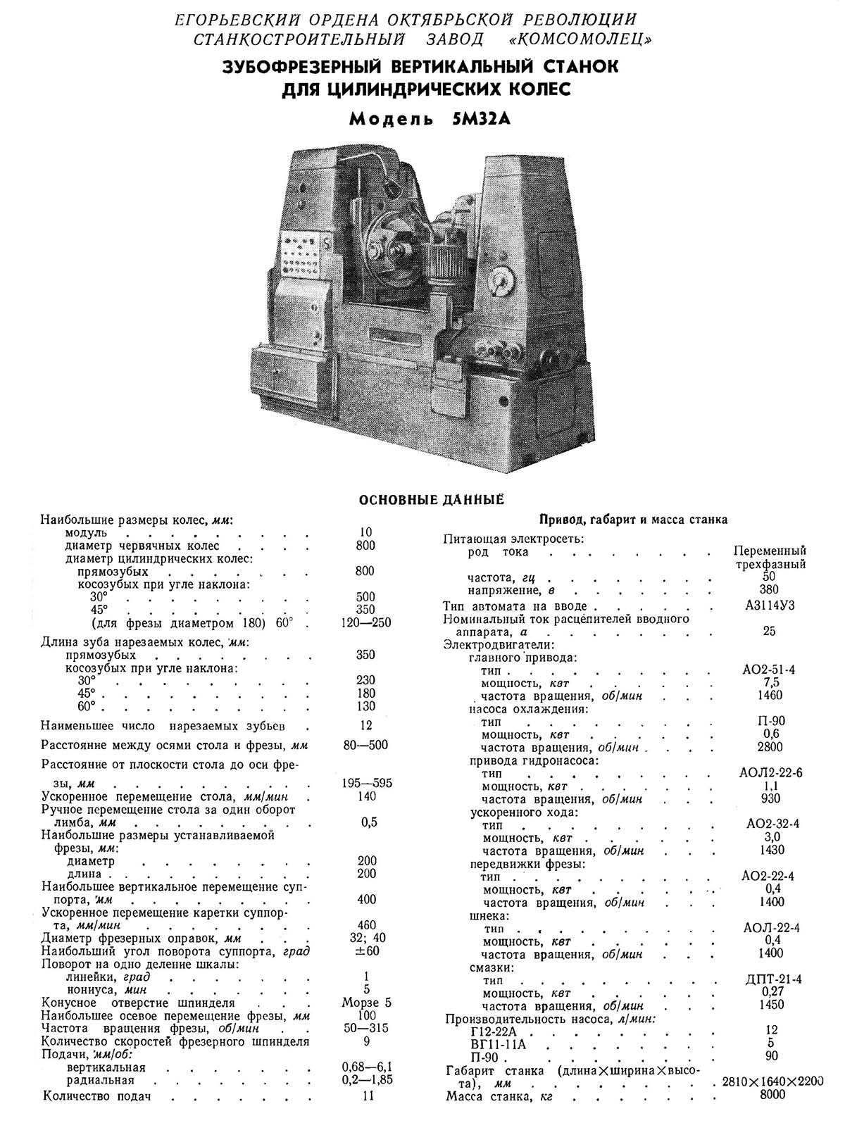 Производитель вертикального зубофрезерного напівавтомату 5М32 Егорьевский станкостроительный завод Комсомолец, основанный в 1930 году.