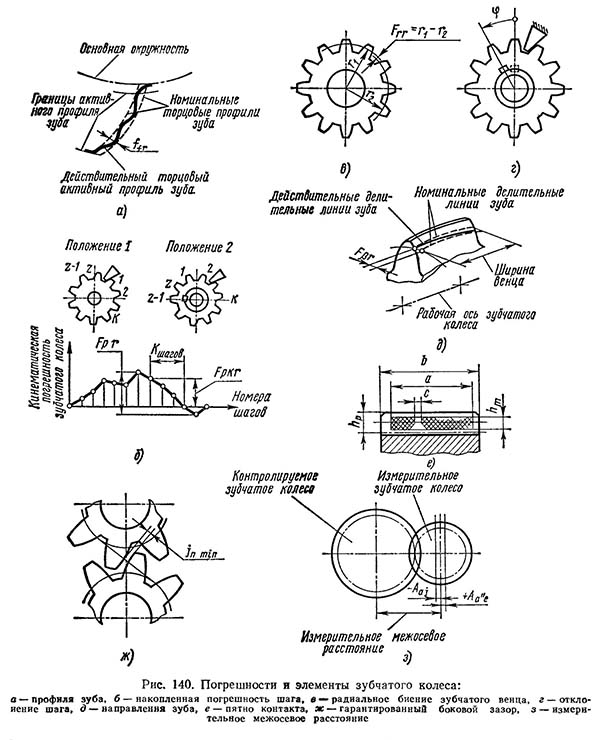 На рис. 140 приведены некоторые погрешности зубчатого колеса і их обозначения по ГОСТу, которые могут встретиться в практической деятельности наладчика.