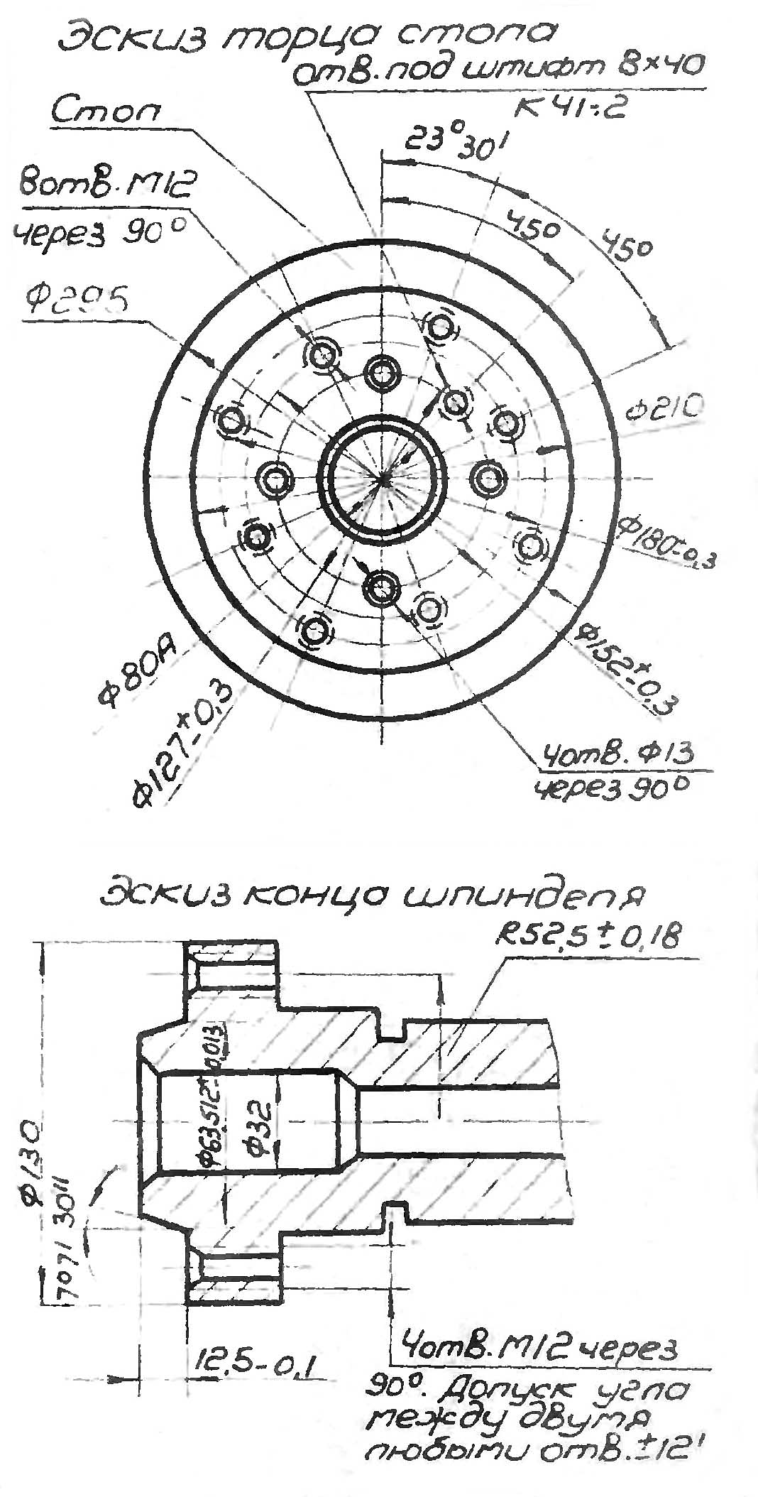 Посадочные і присоединительные базы зубозакругляющего верстата 5М580. Дивитись у збільшеному масштабі