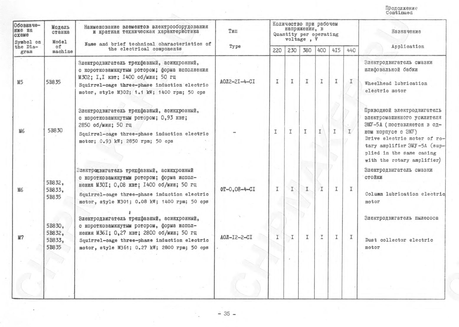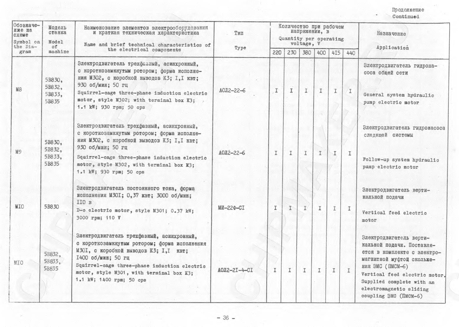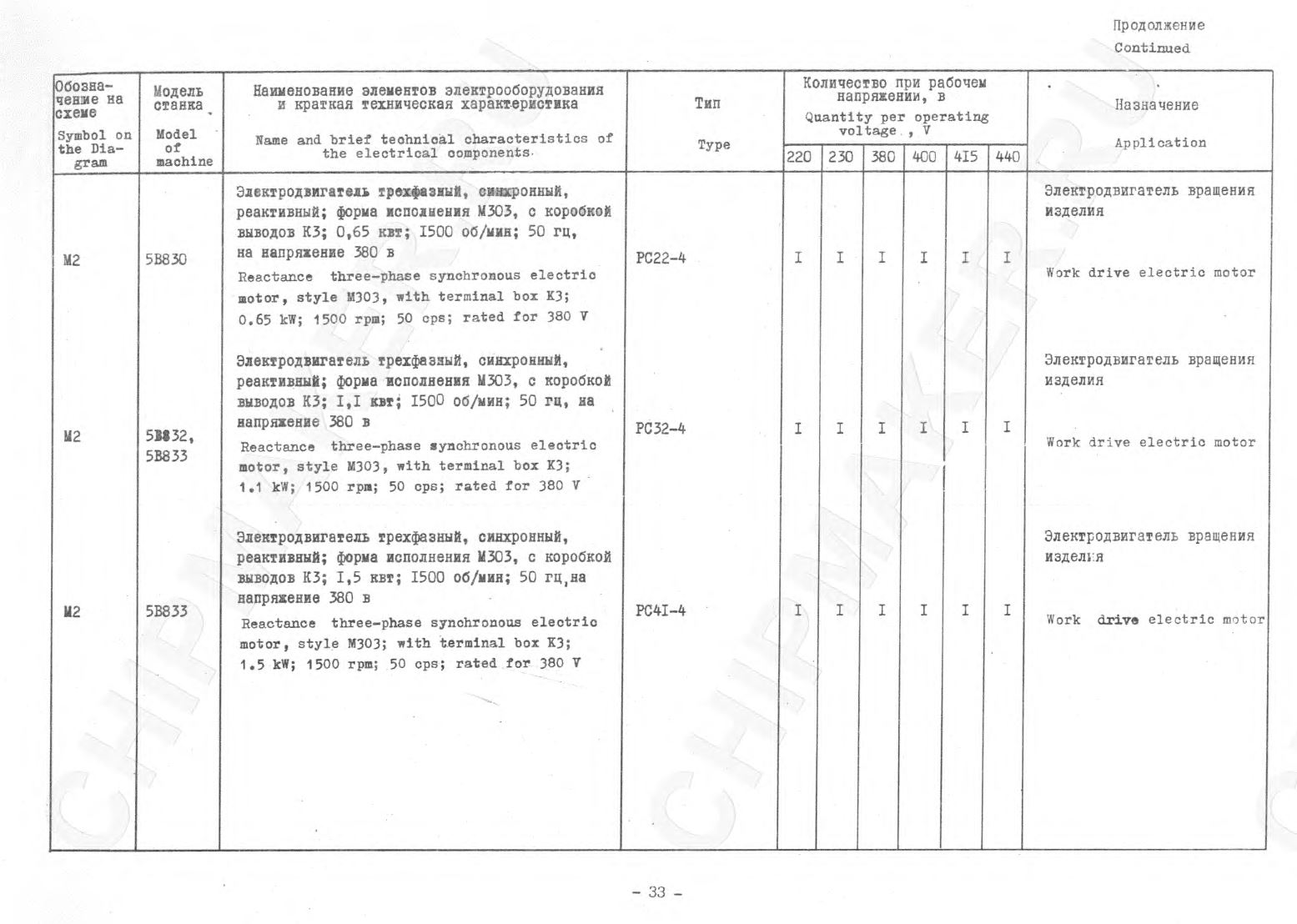 Верстати моделей 5В832, 5В833, 5В835 при напряжении ...в, частоте ...Гц: