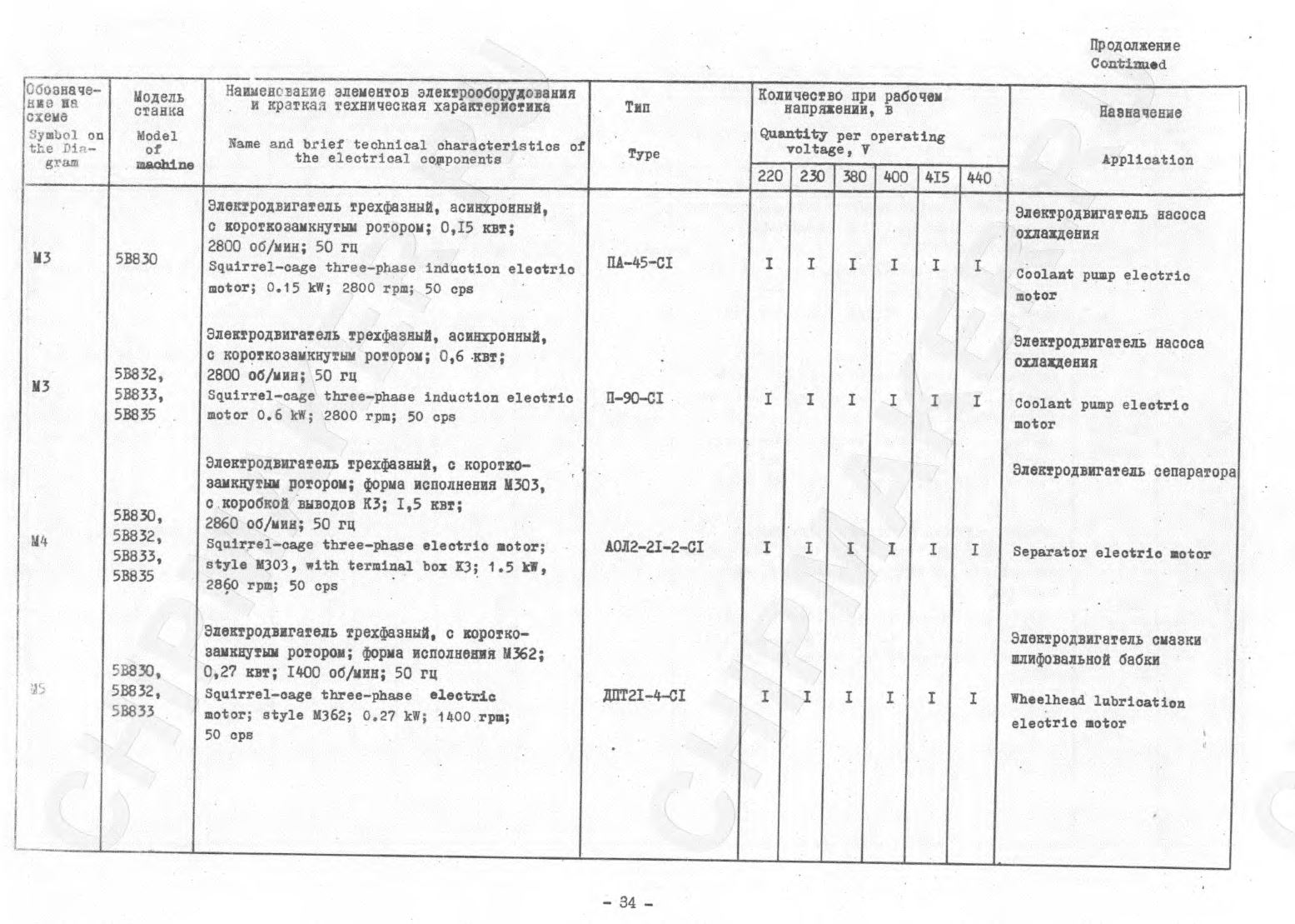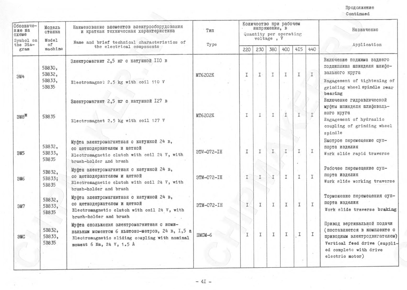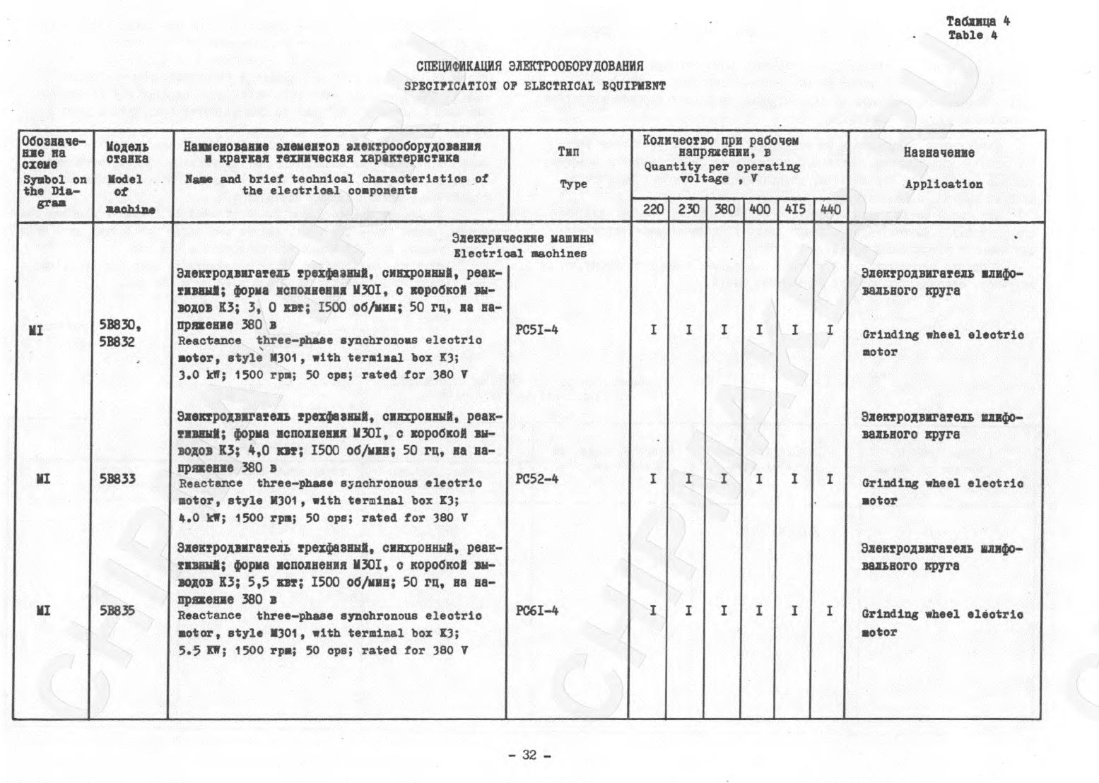 Верстати моделей 5В832, 5В833, 5В835 при напряжении ...в, частоте ...Гц: