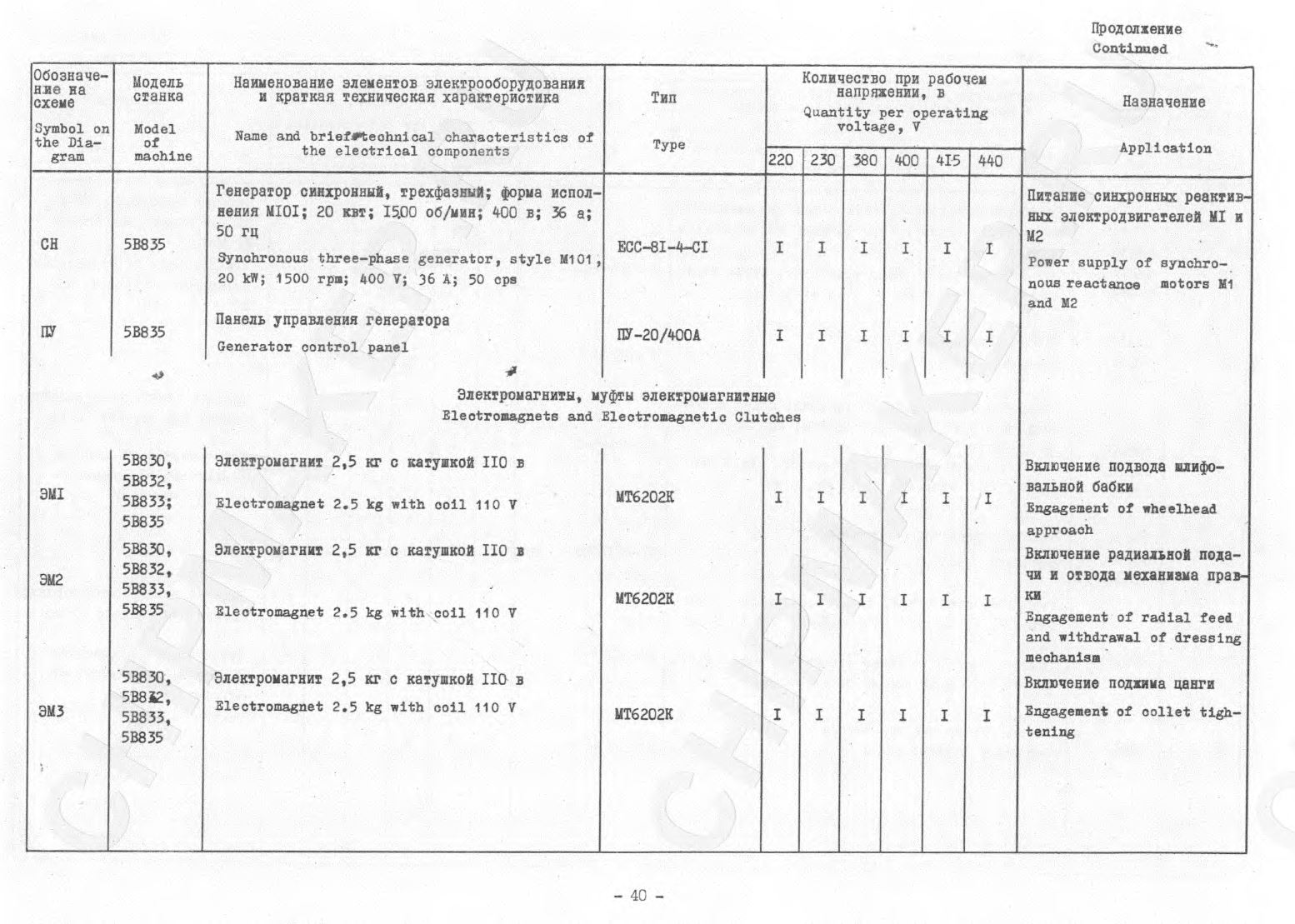 Електроустаткування зубошлифовального верстата 5В830, 5В832, 5В833, 5В835