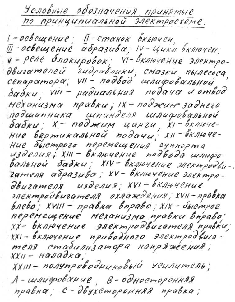 При наладке електроустаткування следует мати в виду, что увімкнення верстата при отсоединенных проводах в клеммной коробке електродвигуна правки М11 приводит к зарядке конденсаторов C1, С2, С3, напряжение на которых остается в етом случае і після отключения верстата.