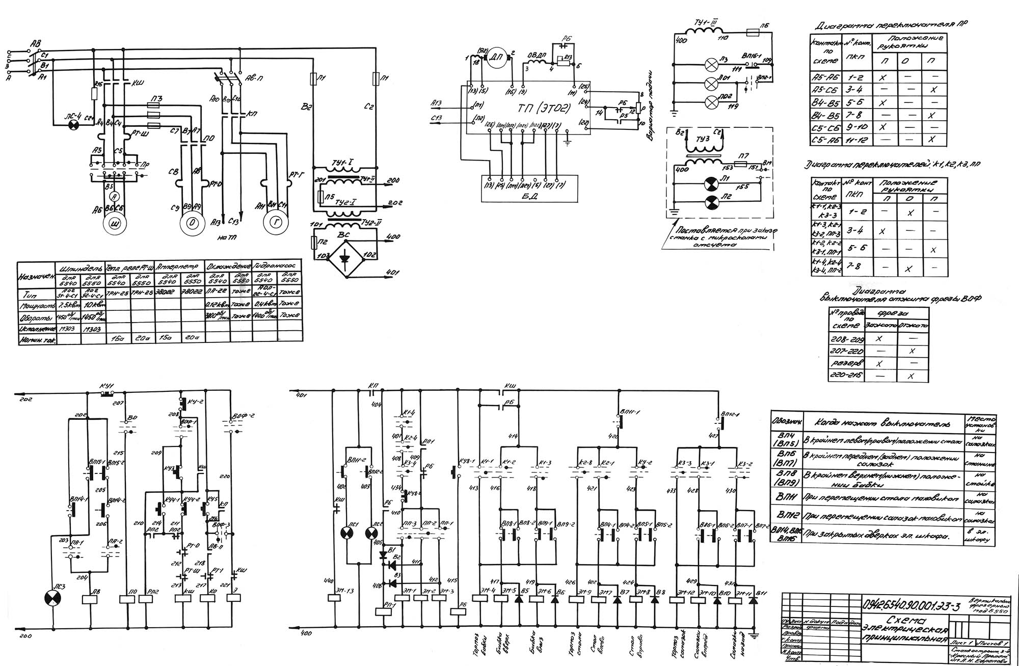 Схема електрична принципова фрезерного верстата 6540